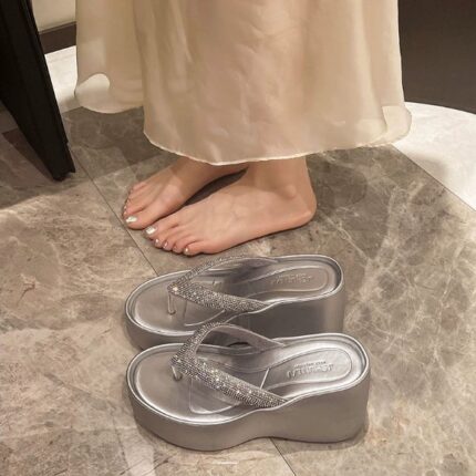 Rhinestone silver ultra-high heel wedge heel thick-soled