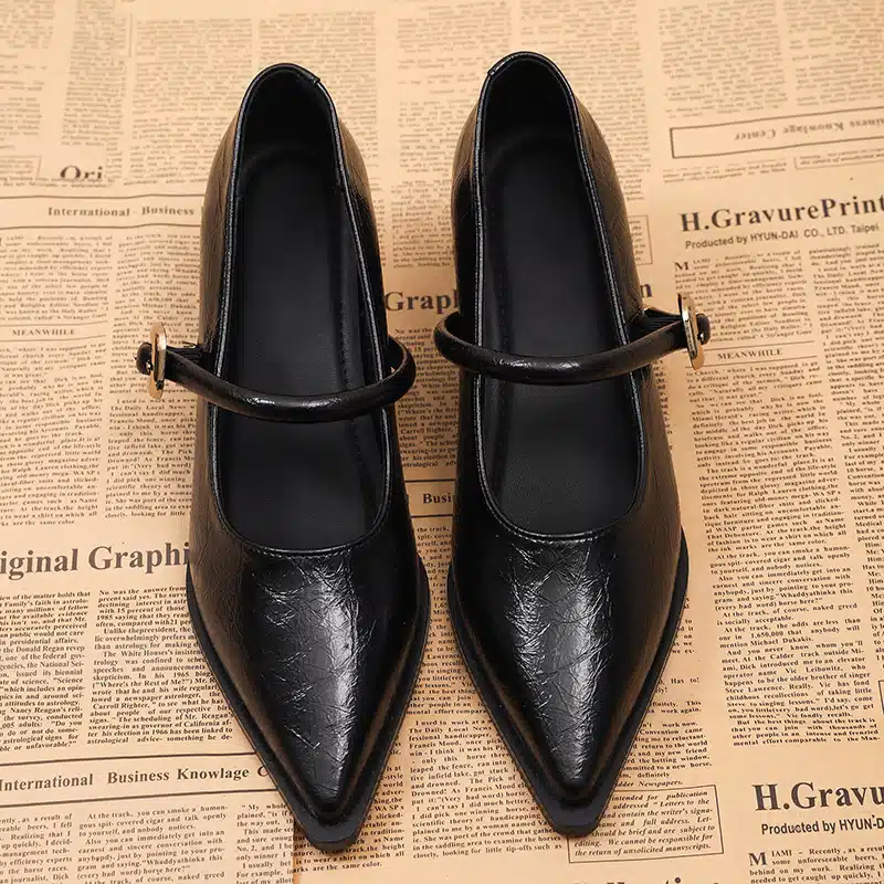 French retro pointed rivet single shoes for women