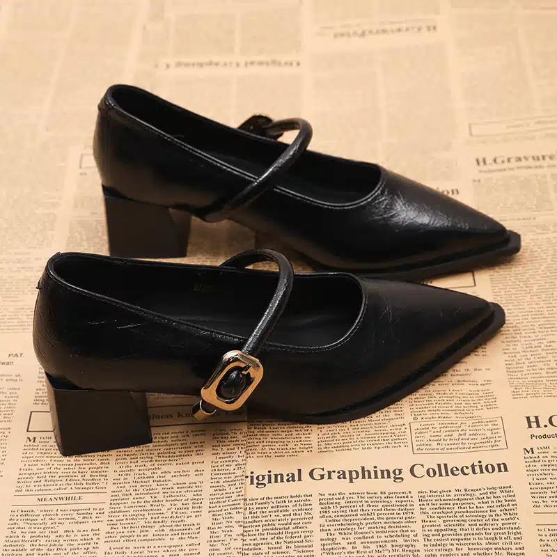 Women’s mid-heeled shoes with deep mouth, thick heels