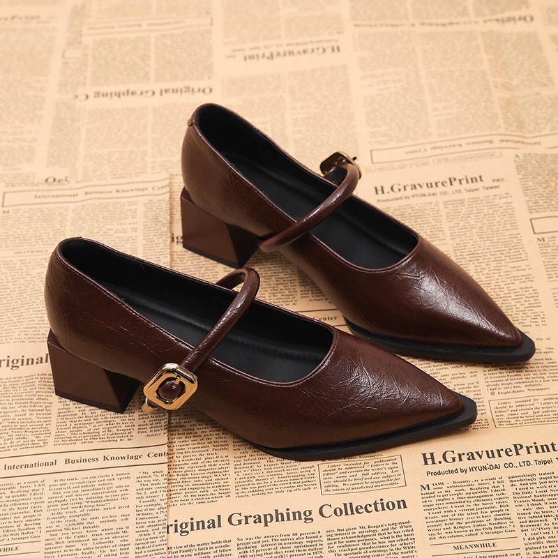 New style splicing thick heel one-line buckle French square