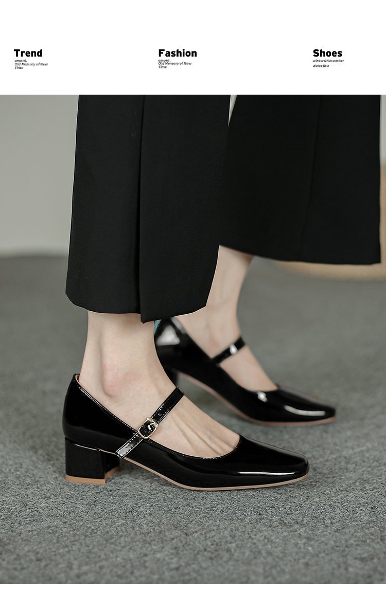New style splicing thick heel one-line buckle French square