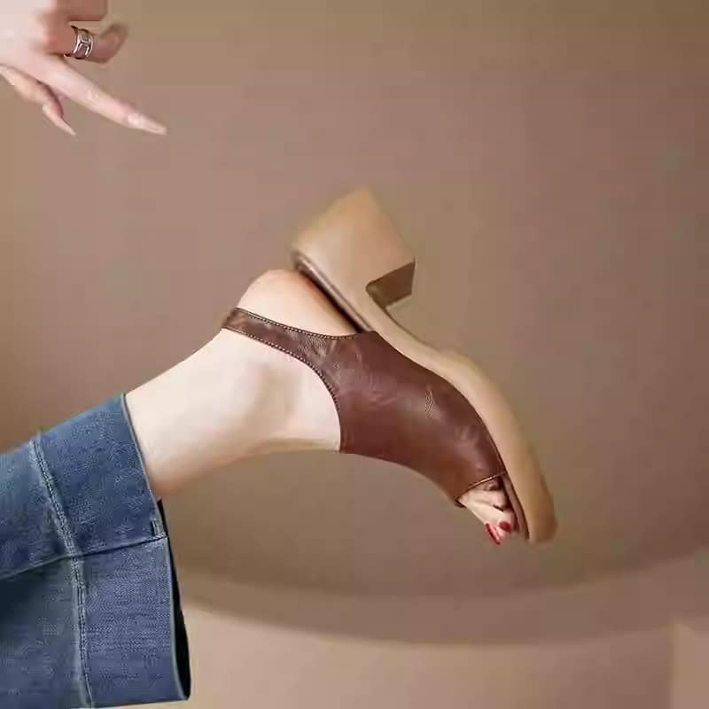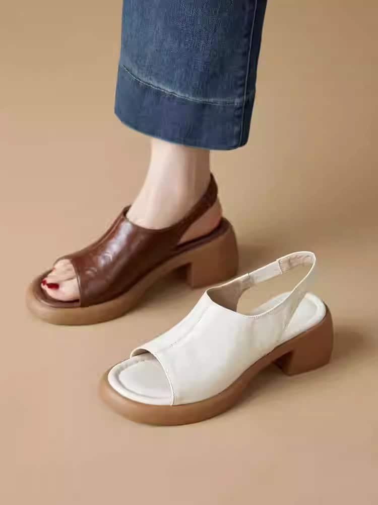 Cowhide version ~ Retro thick-heeled sandals