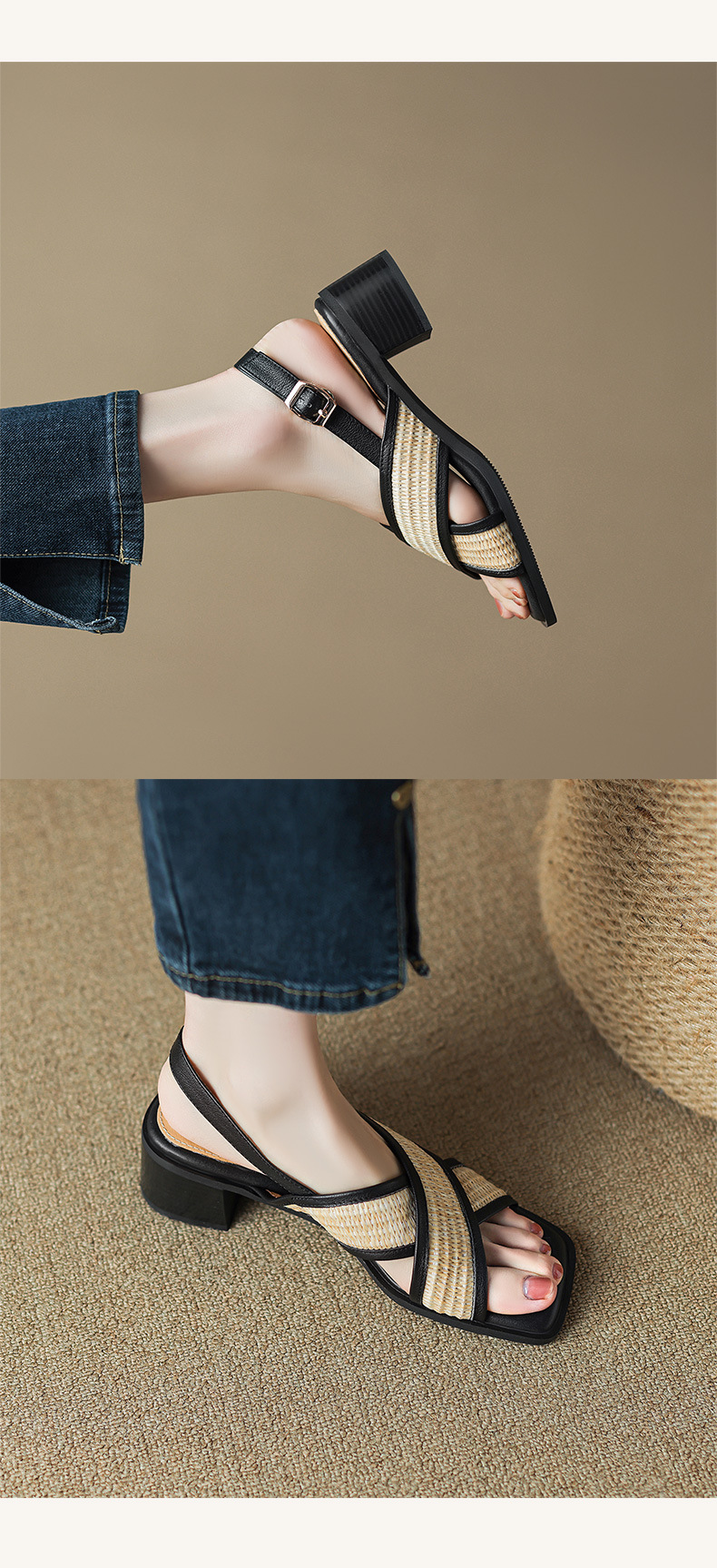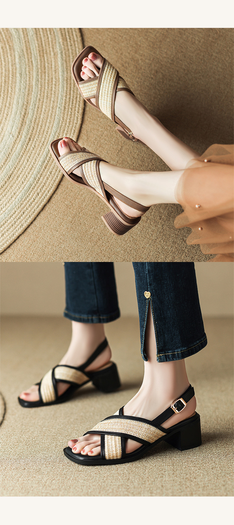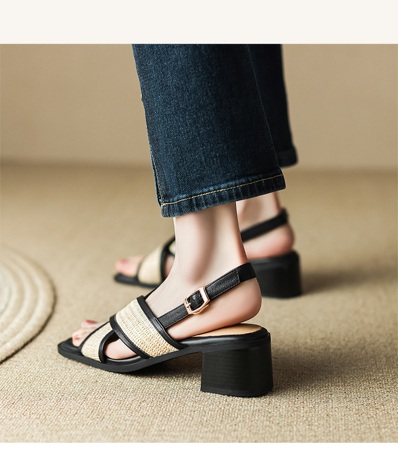 Feeling of stepping on shit~ Chunky heel sandals