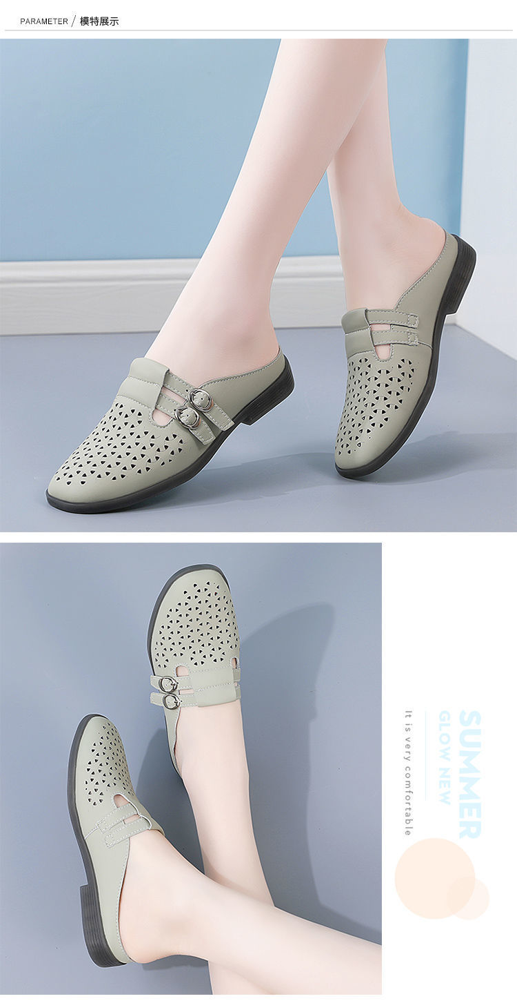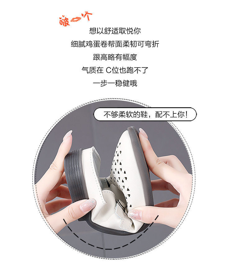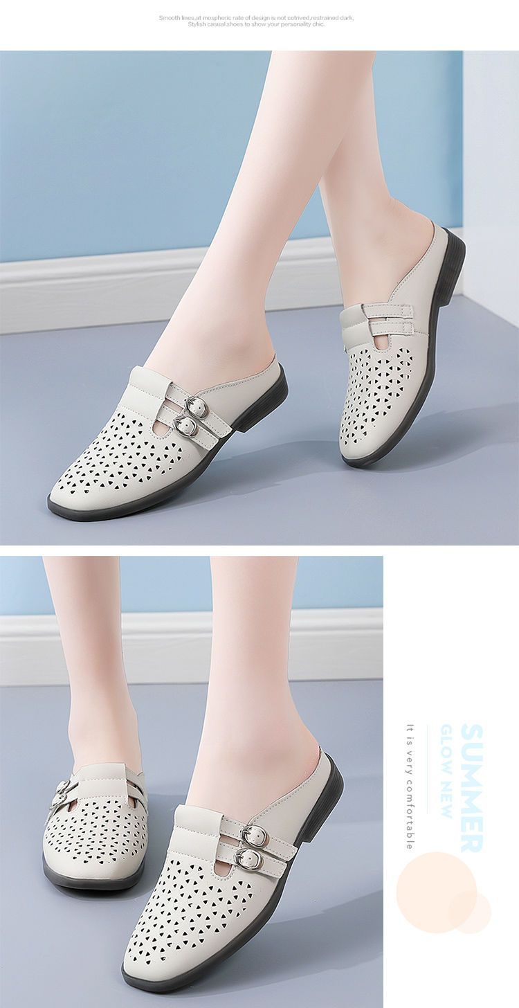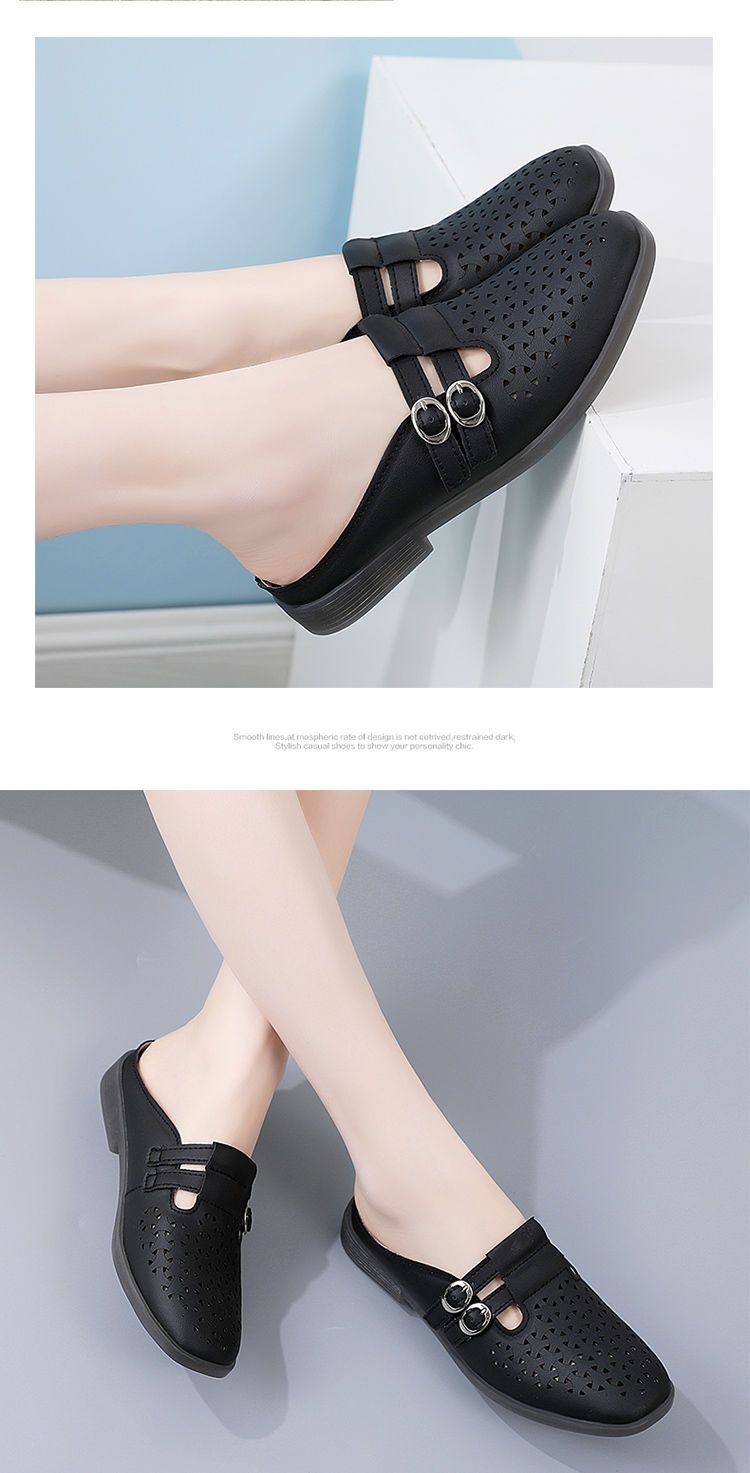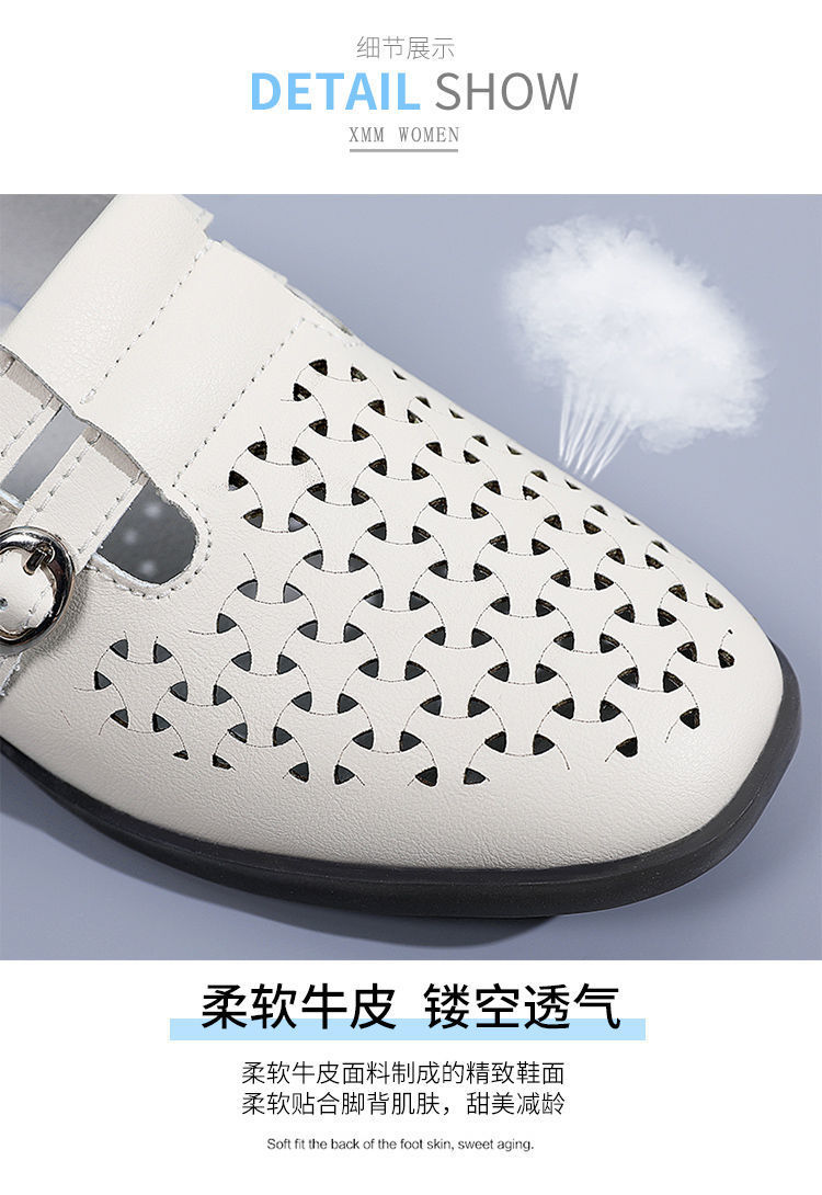 Flat Soft Leather Hollow Breathable Mom Shoes for Outdoor Wear