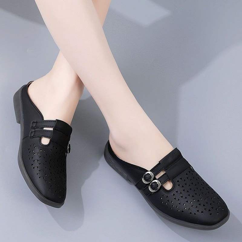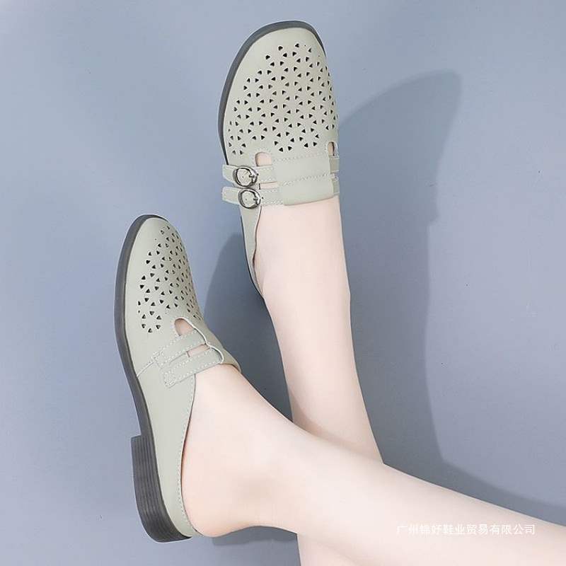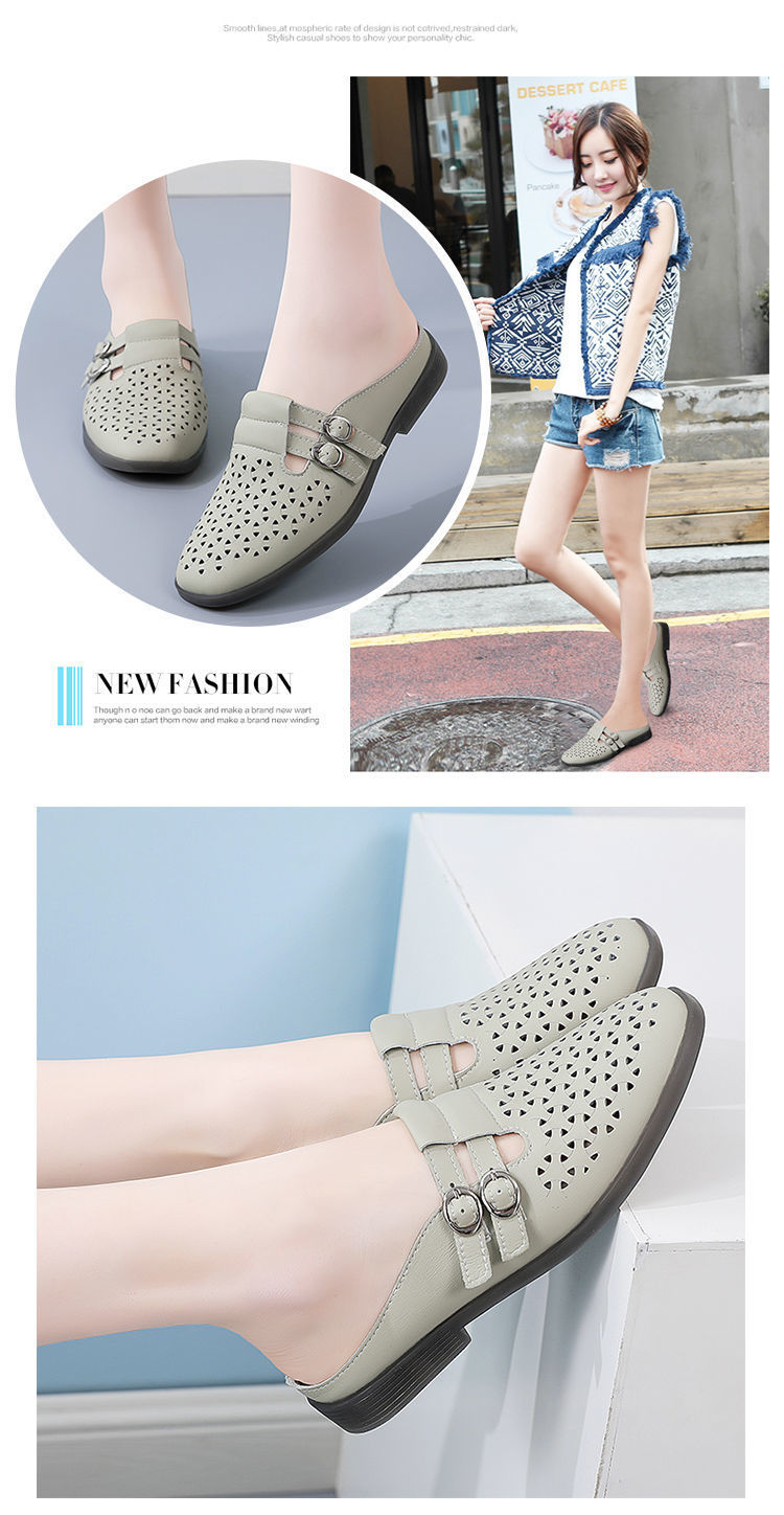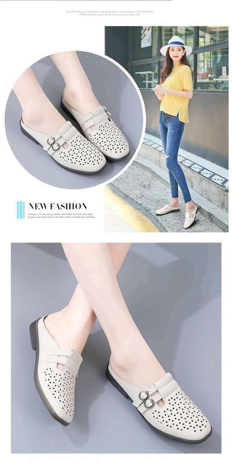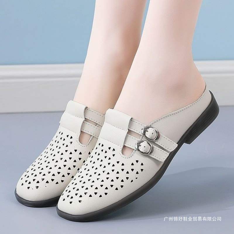 Flat Soft Leather Hollow Breathable Mom Shoes for Outdoor Wear