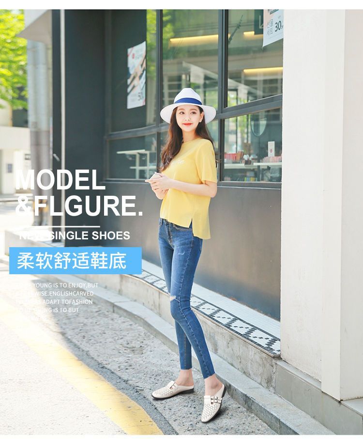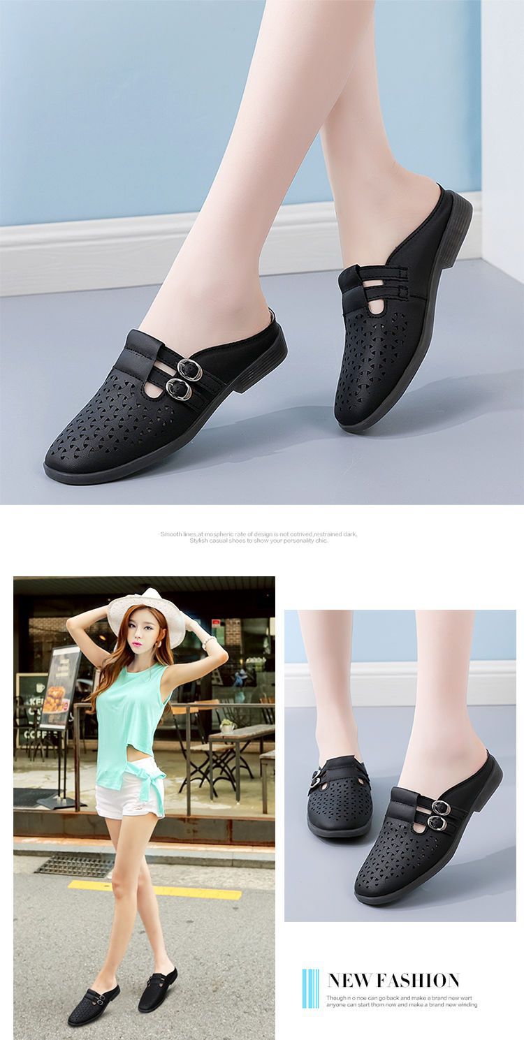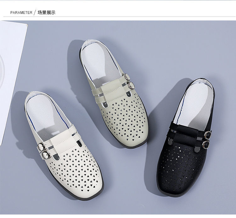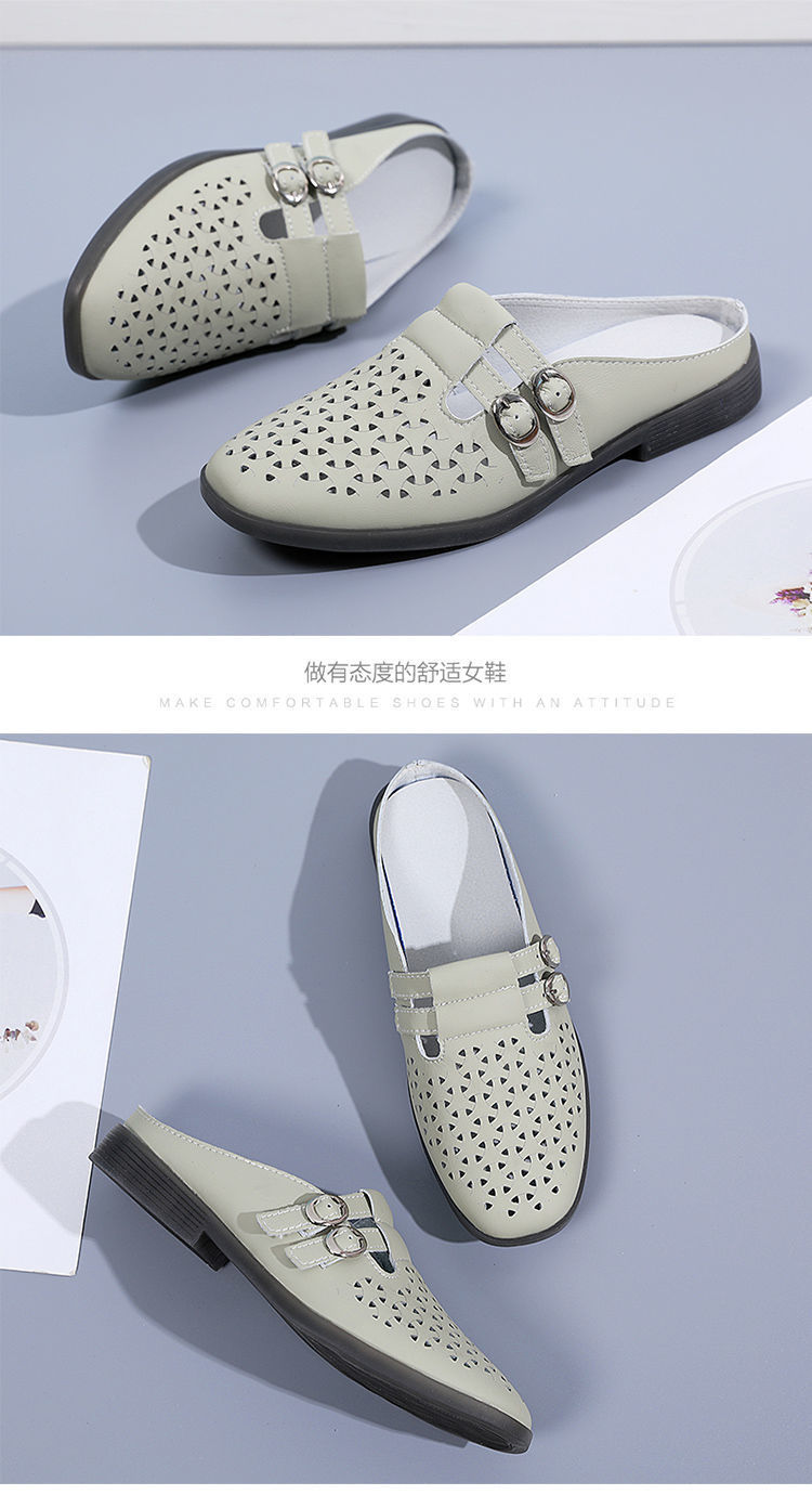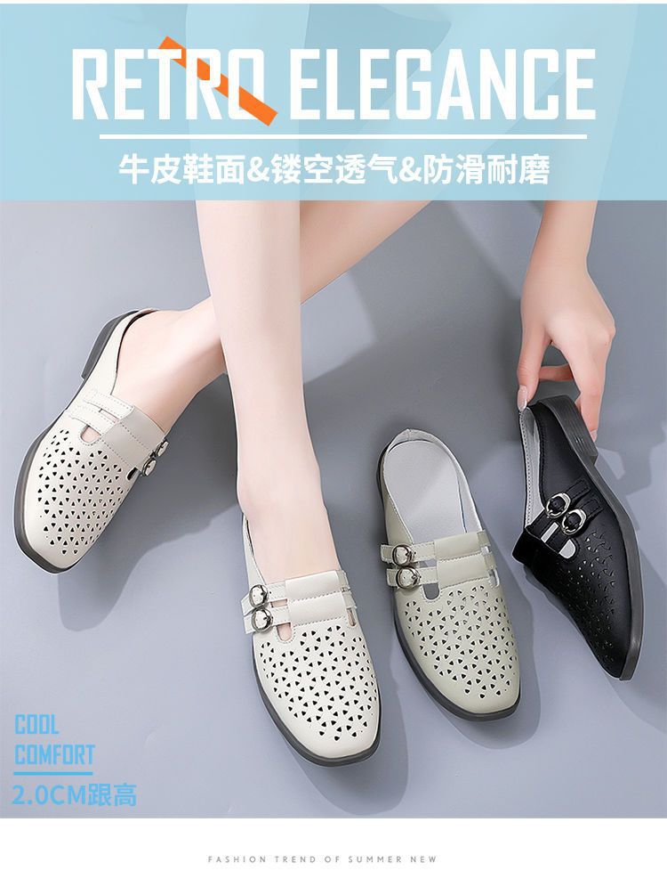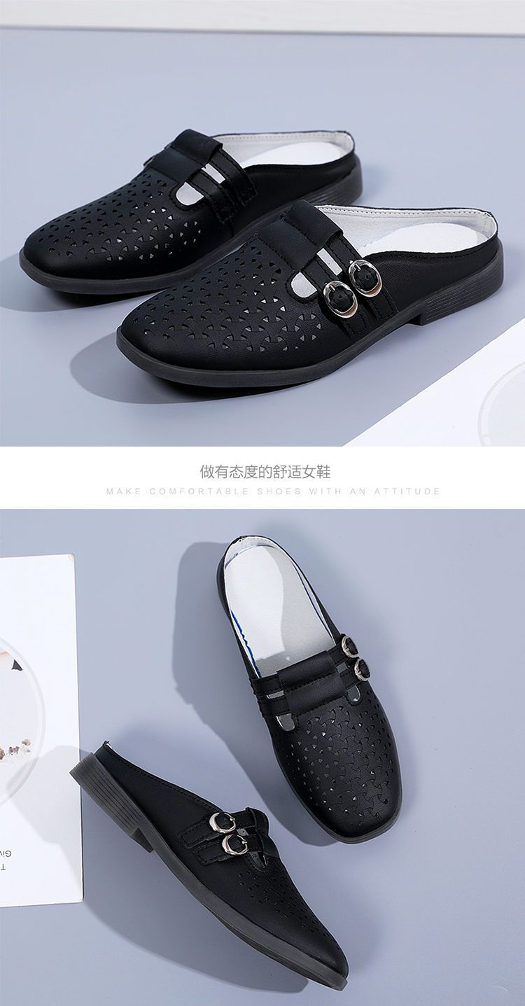 Flat Soft Leather Hollow Breathable Mom Shoes for Outdoor Wear