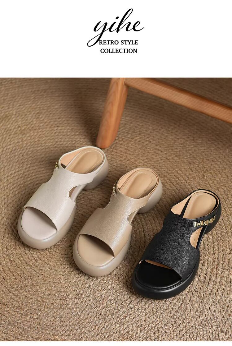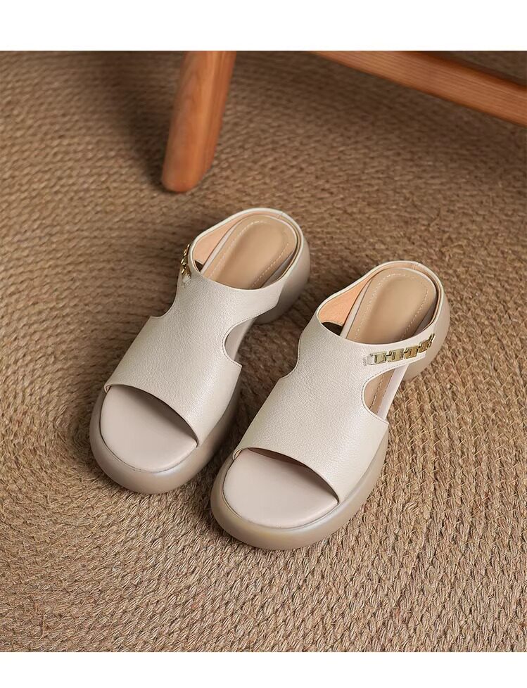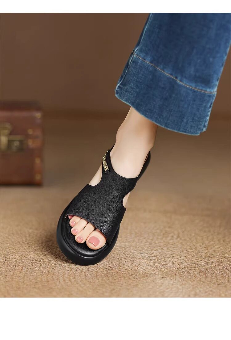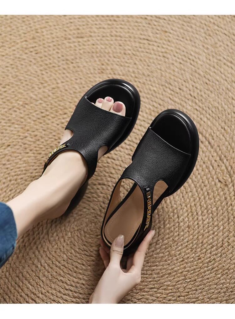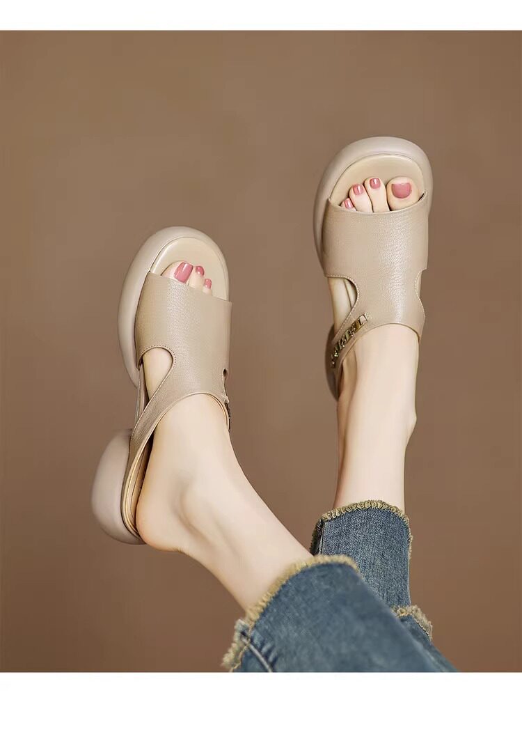 Genuine leather thick-soled sandals for women