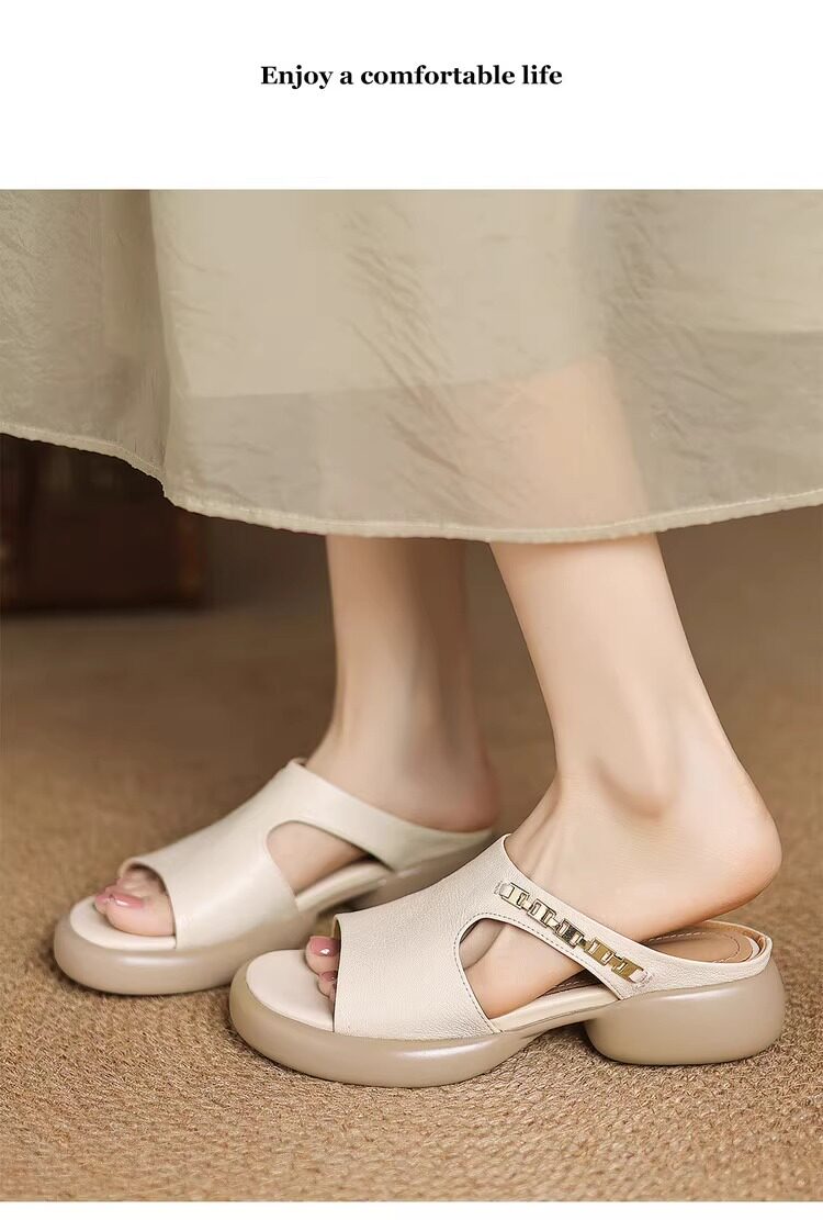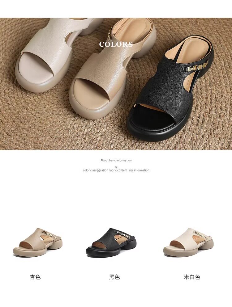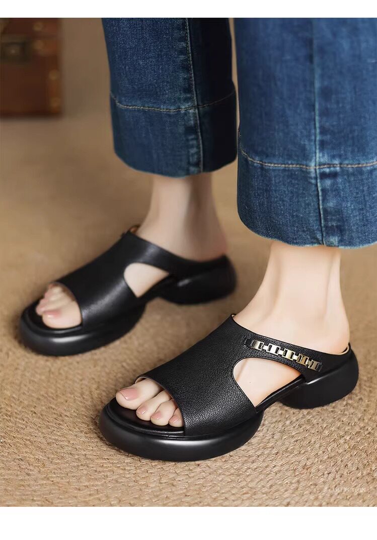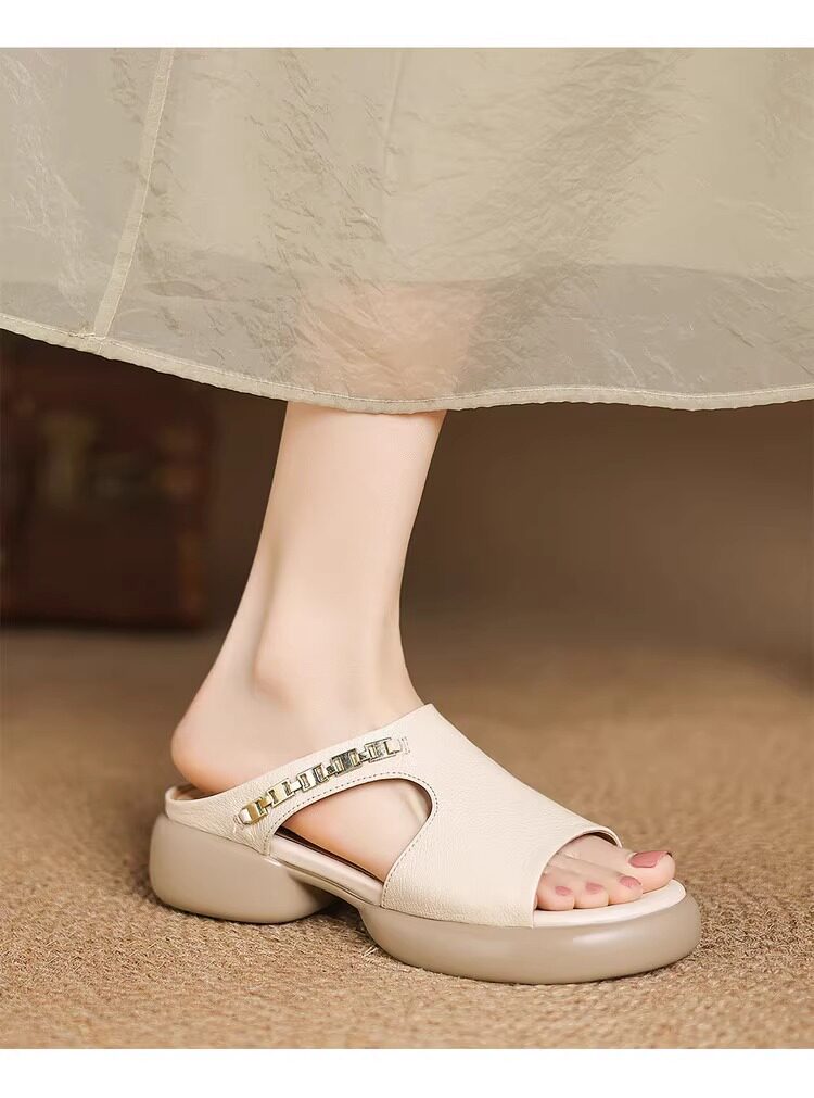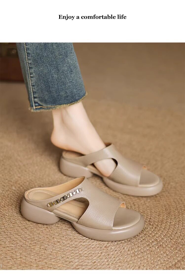 Genuine leather thick-soled sandals for women