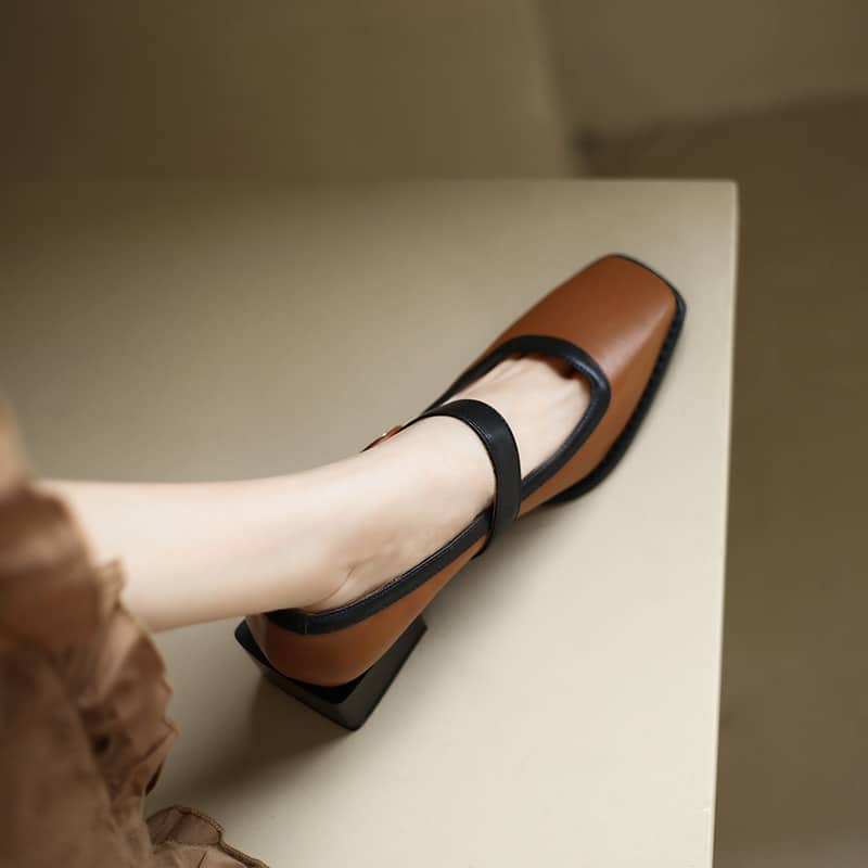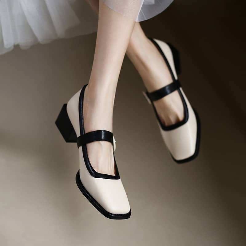 Spliced square toe high heels for women