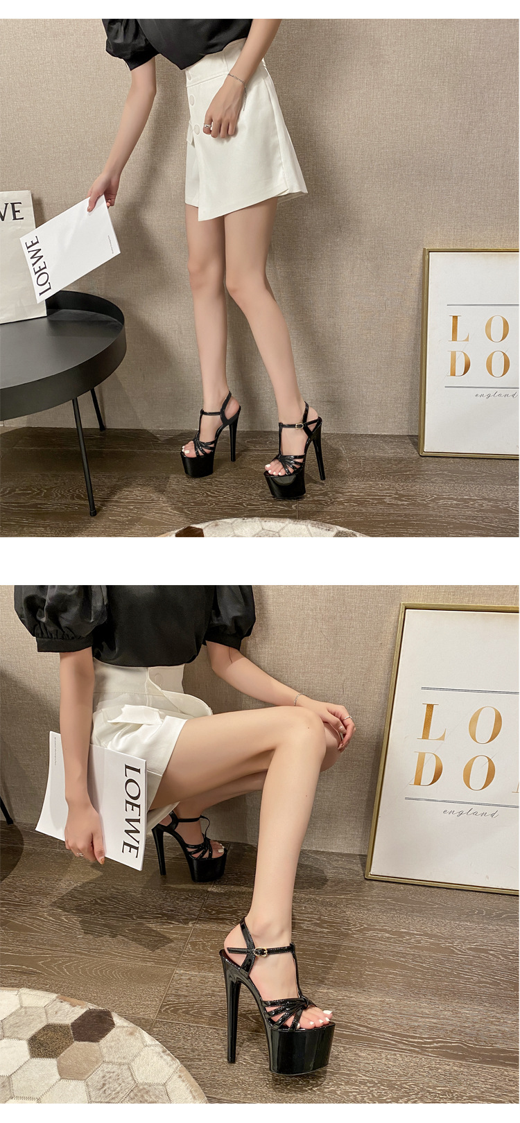 Model stage catwalk one-strap stiletto ultra-high heel 17cm