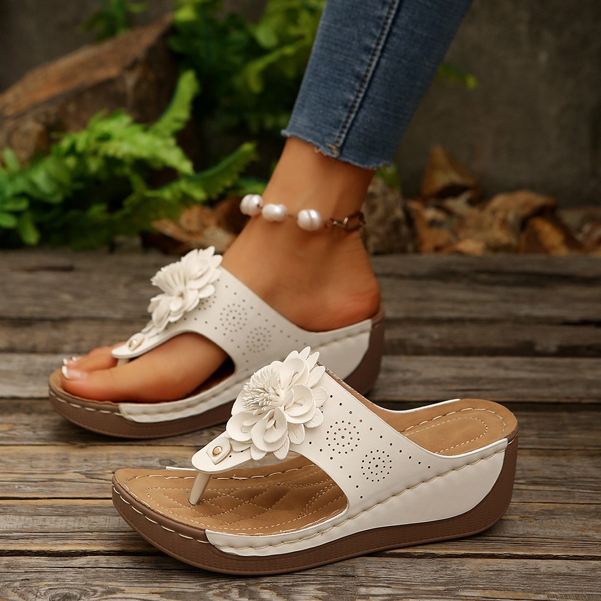 Buckle chain flat-bottomed beach sandals for women
