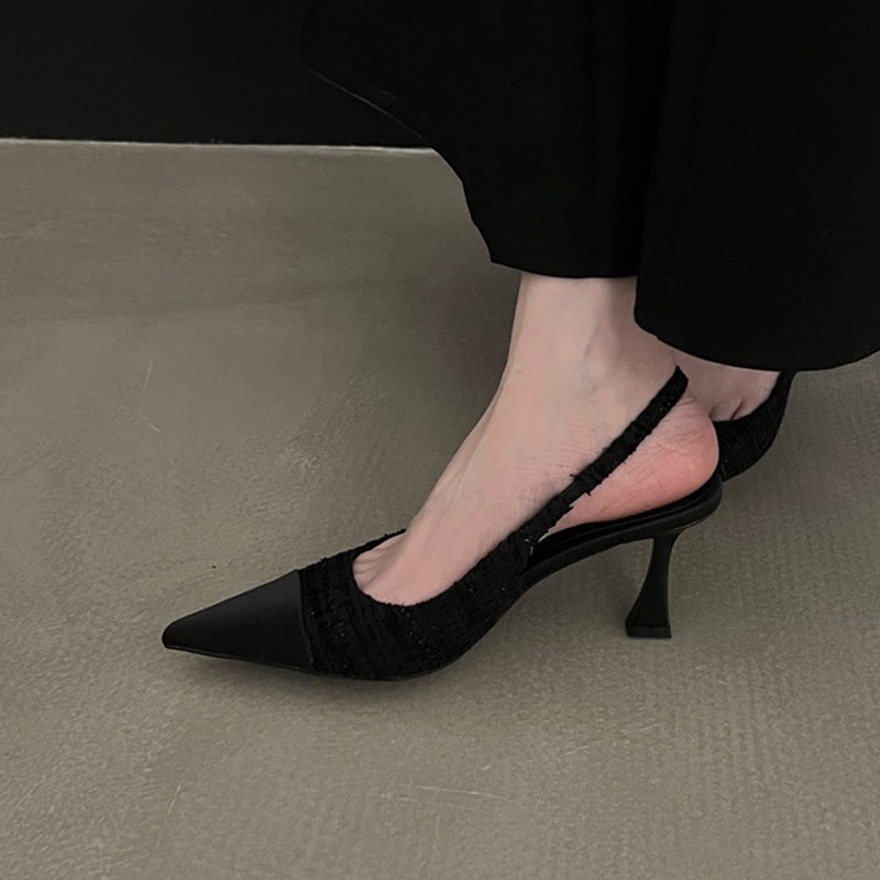 French pointed stiletto heel back empty closed toe heel
