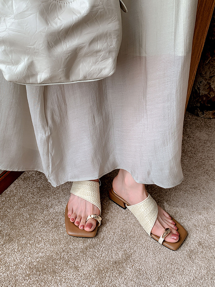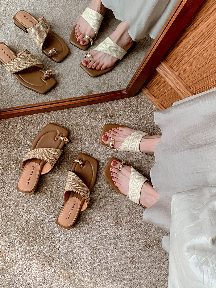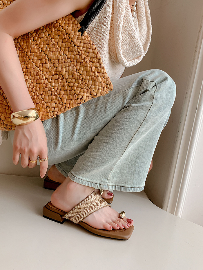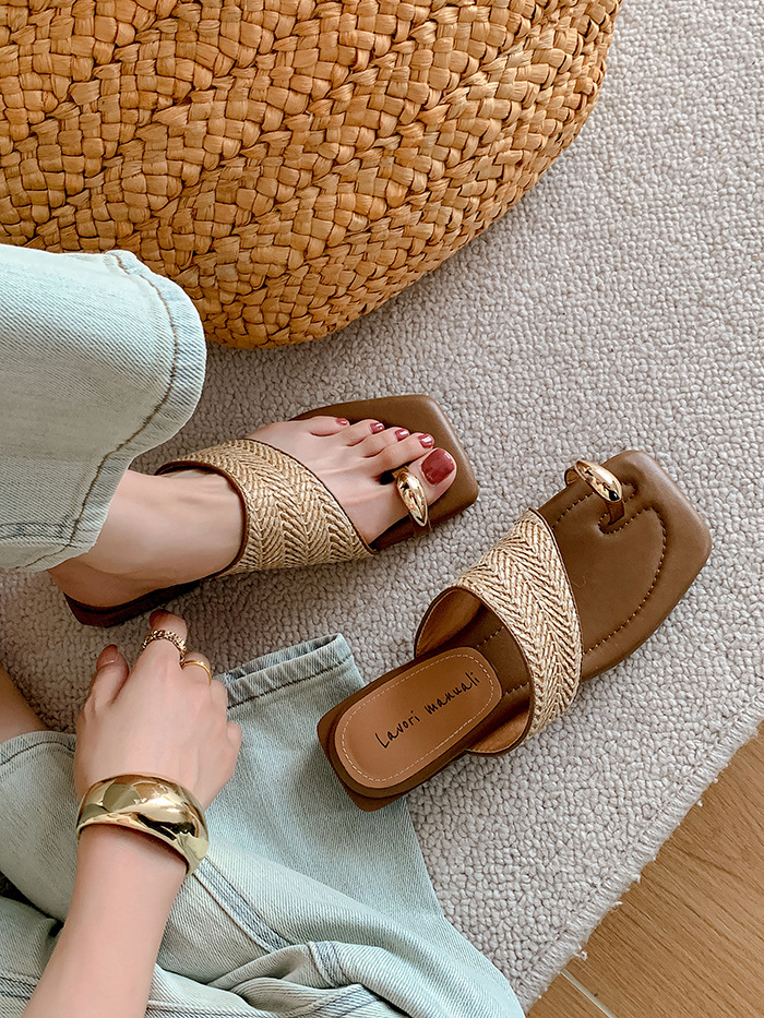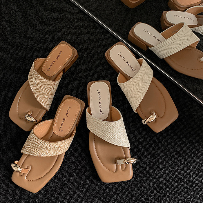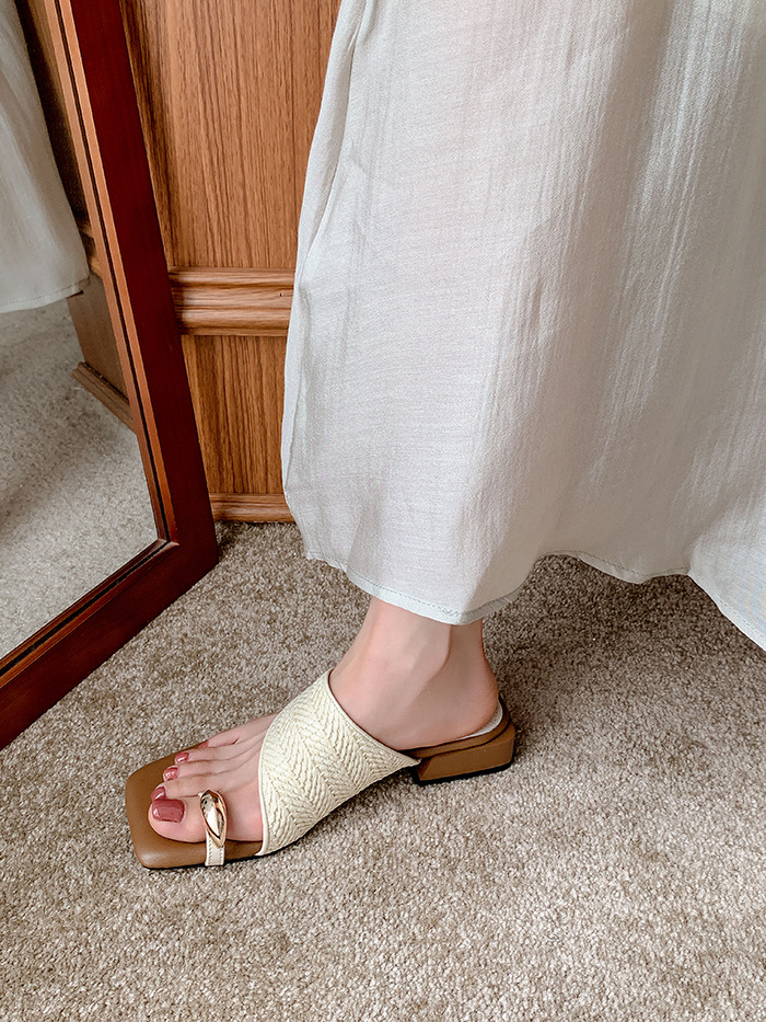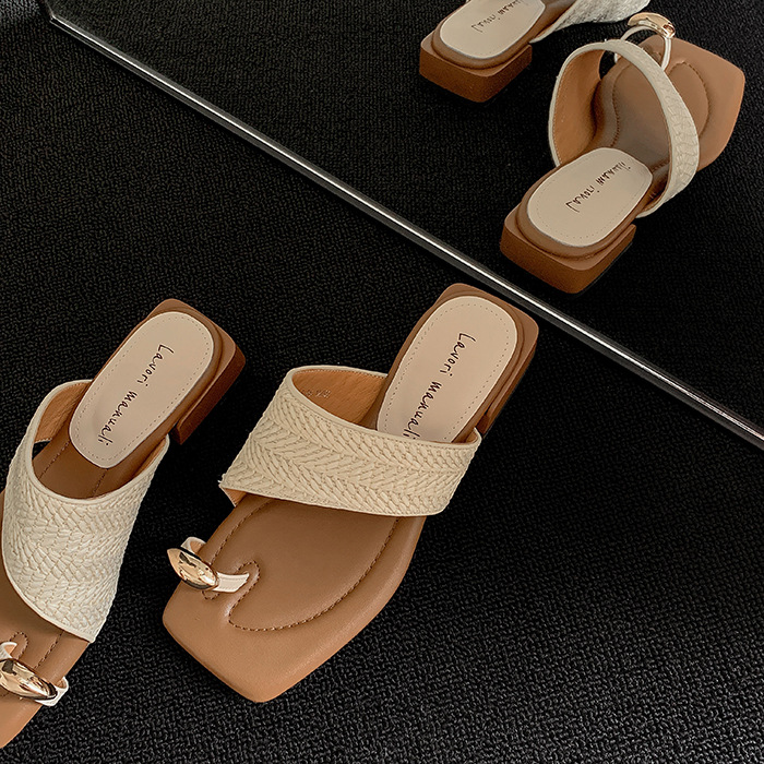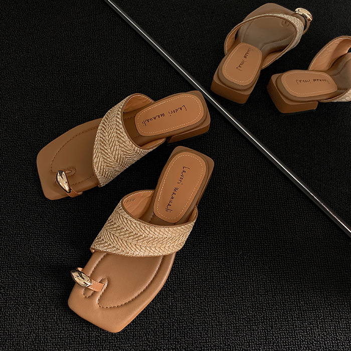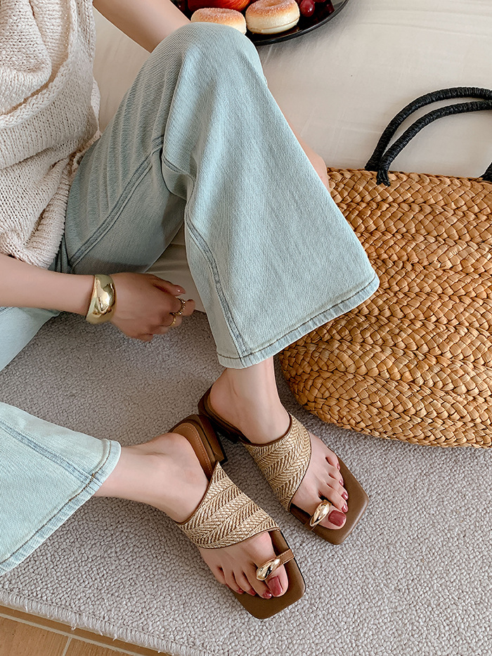 Outwear Handmade Straw Retro Vacation Style 2025 Summer One-toe Beach Half-swell Women’s Homemade Woven Sandals