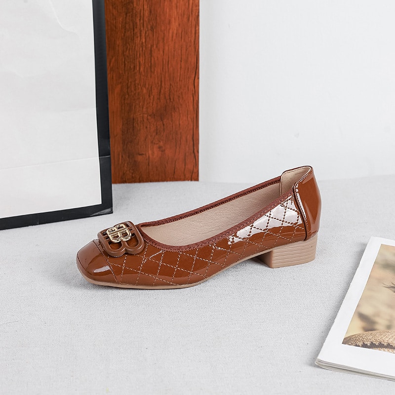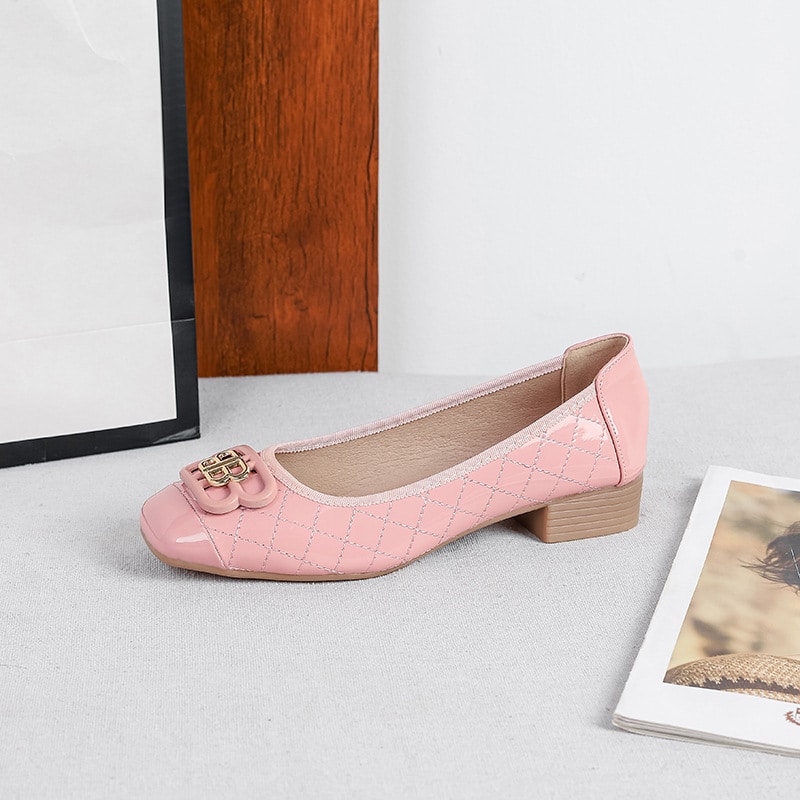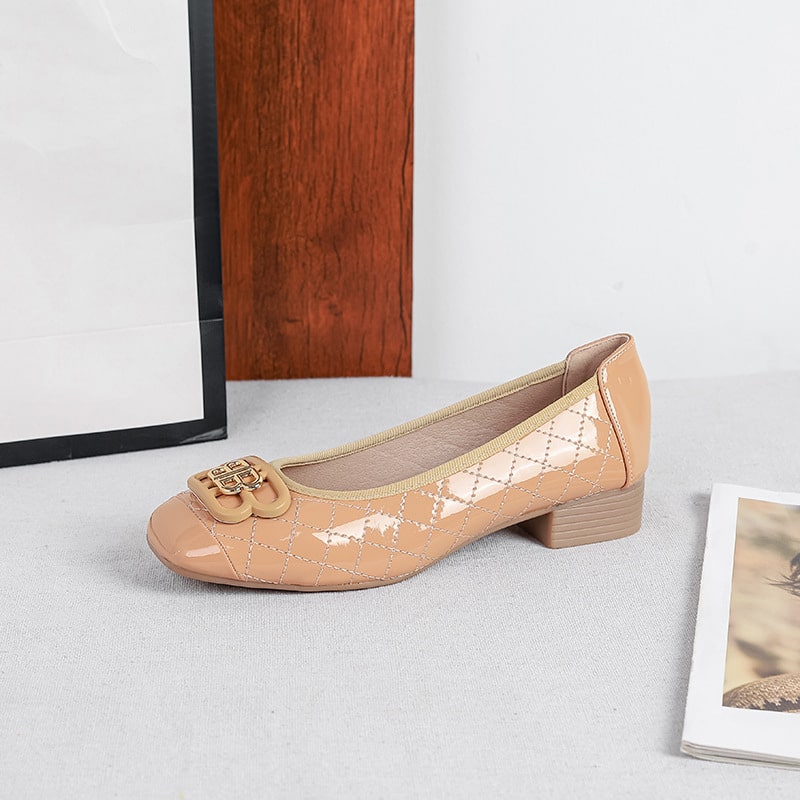 Women’s mid-heeled shoes with deep mouth, thick heels