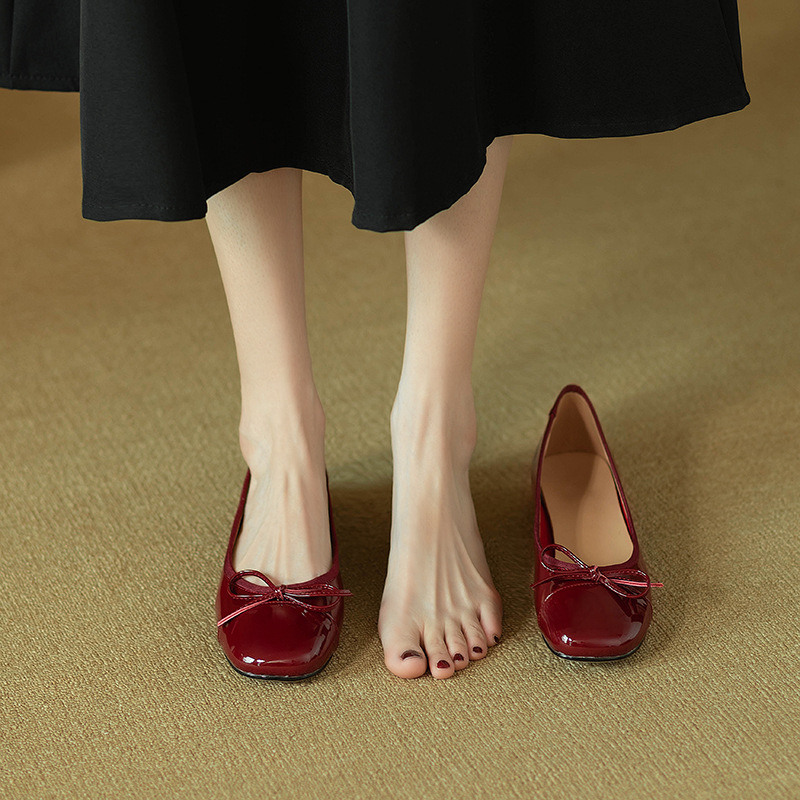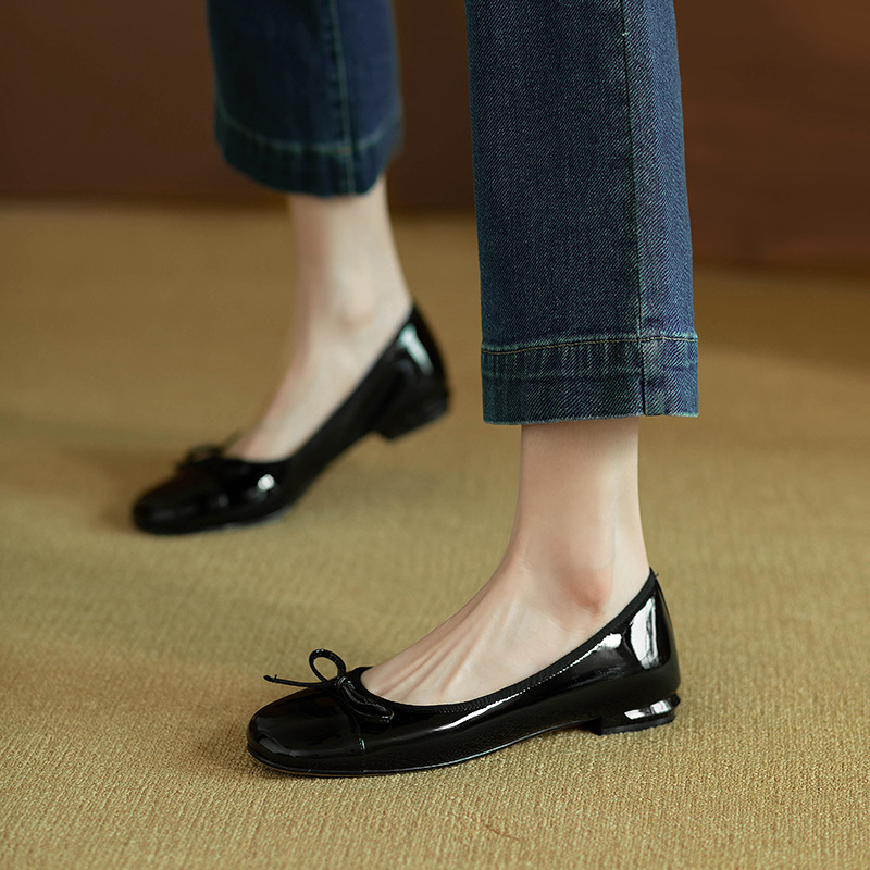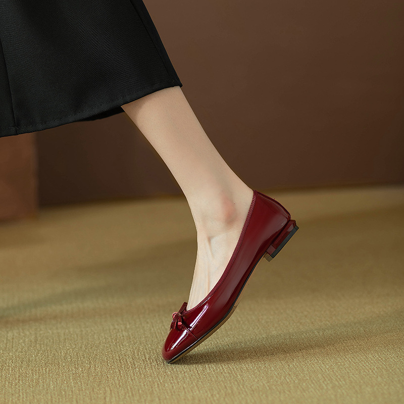 Retro Bowknot Patent Leather Toe Shoes Women’s
