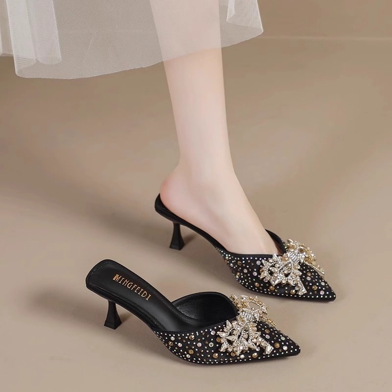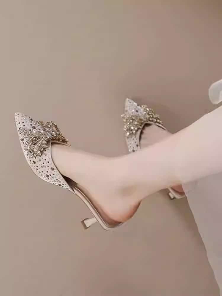 Be the first to review “Rhinestone bow pointed toe stiletto sandals for women” Cancel reply