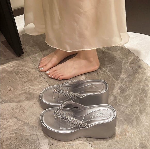 Be the first to review “Rhinestone silver ultra-high heel wedge heel thick-soled” Cancel reply