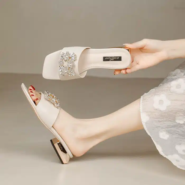 Be the first to review “Rhinestone square buckle ladies slippers flat bottom” Cancel reply