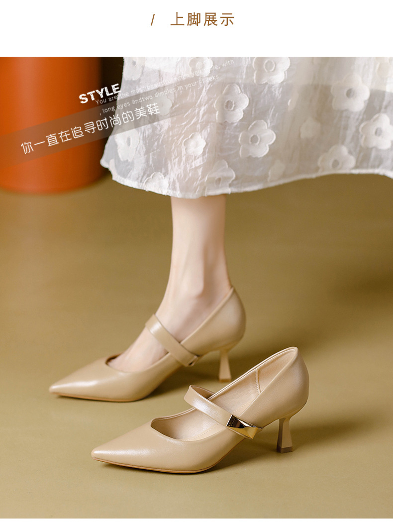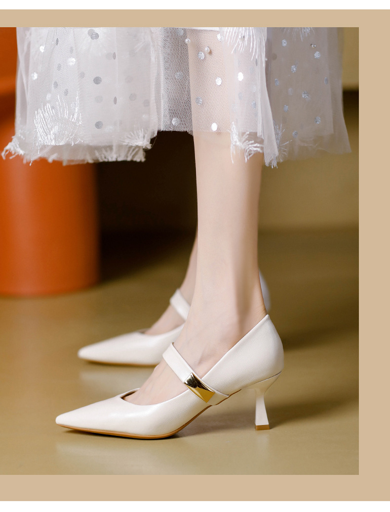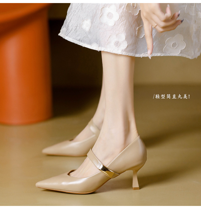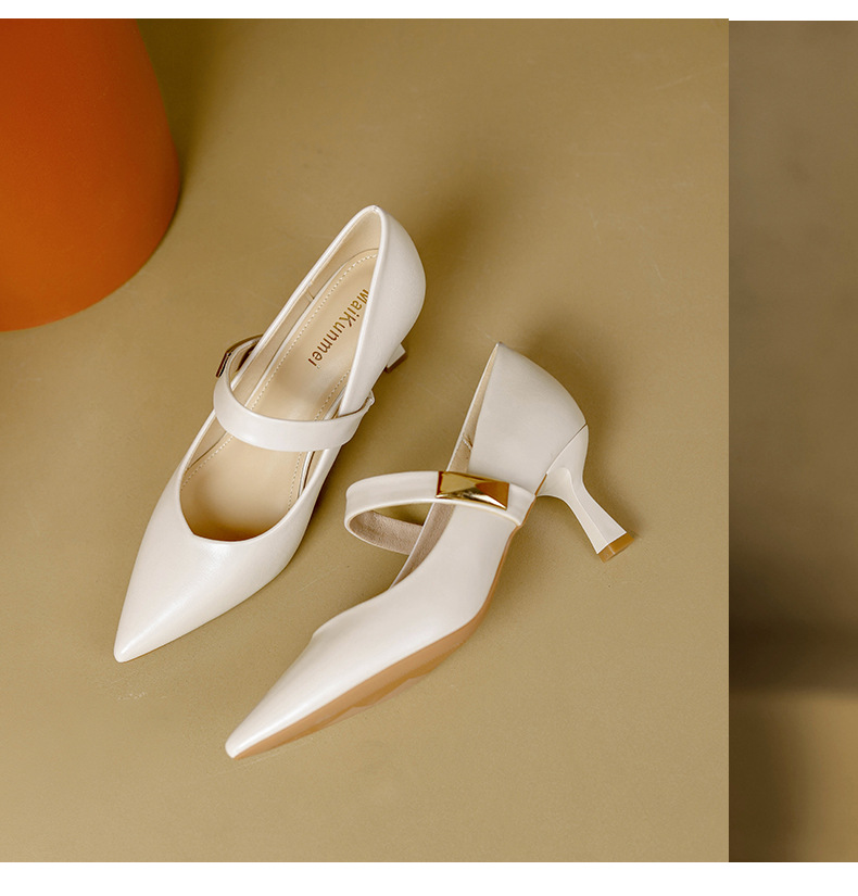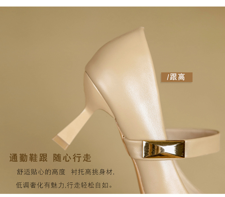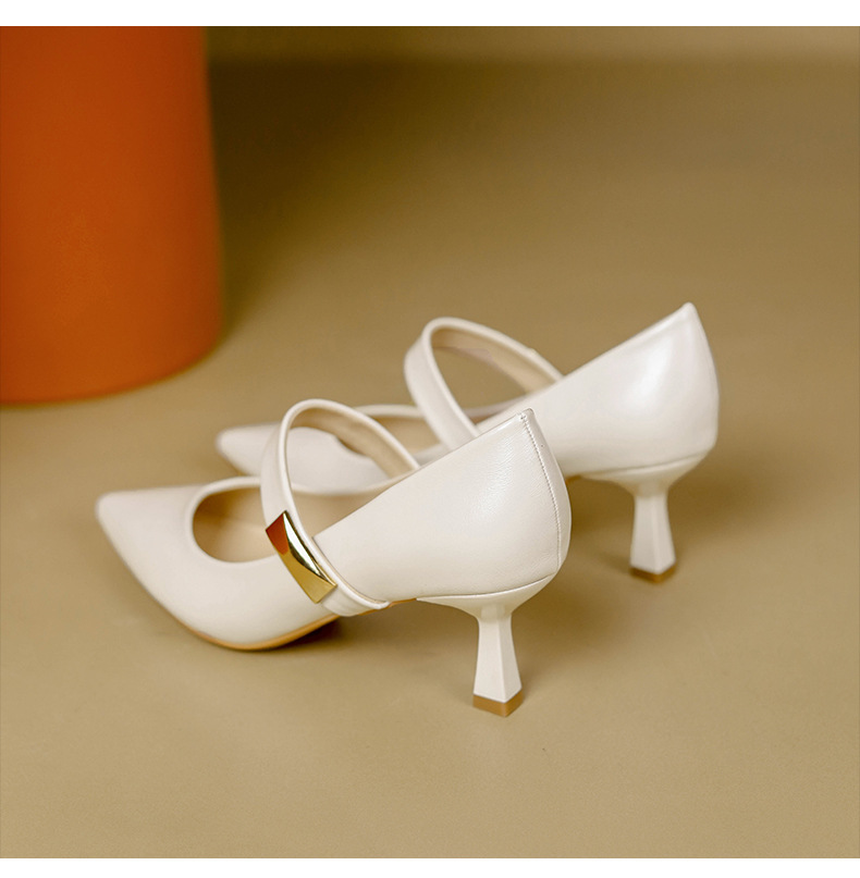 New style splicing thick heel one-line buckle French square