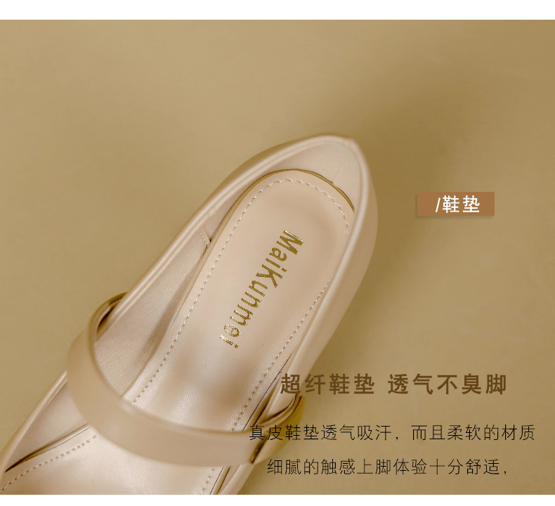 Versatile net celebrity medium high heel thick heel flip flops