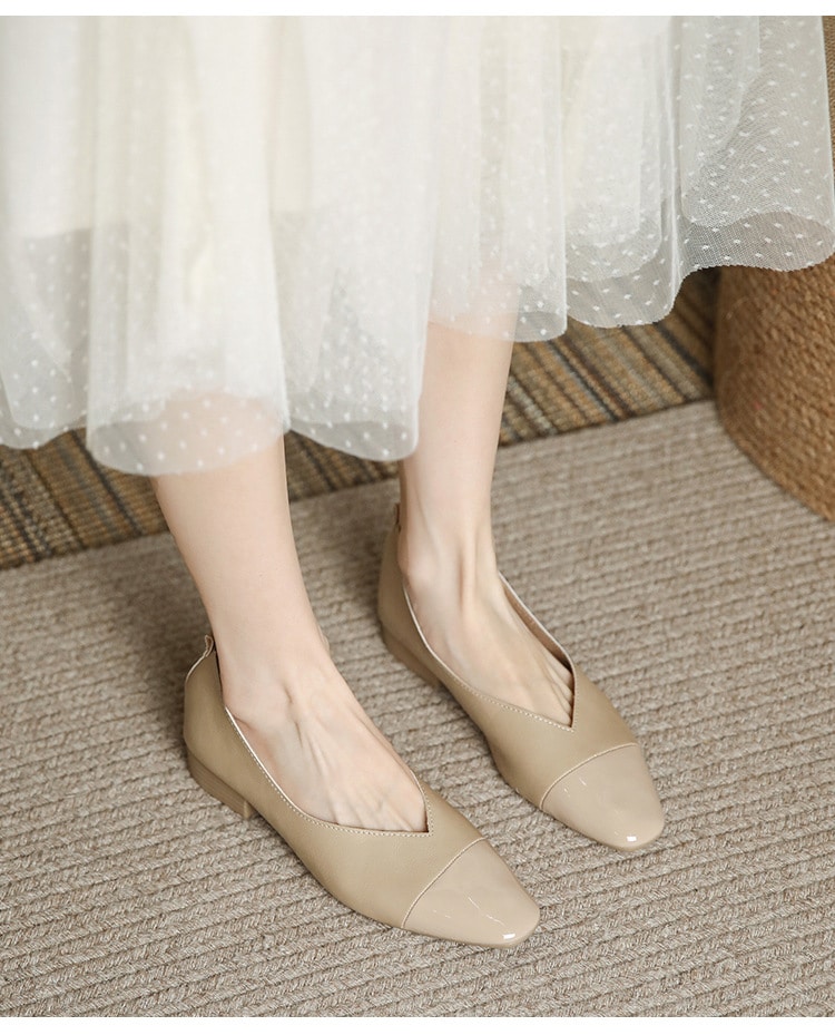 Splicing shallow mouth low heel shoes