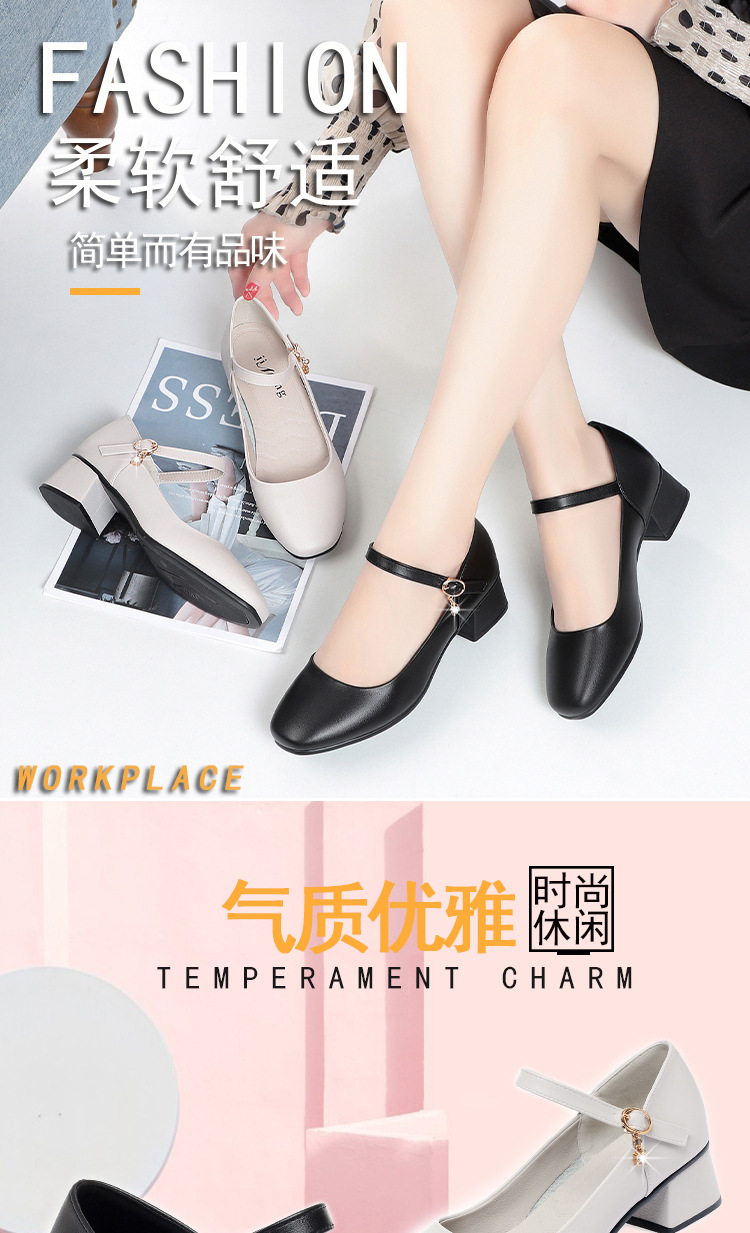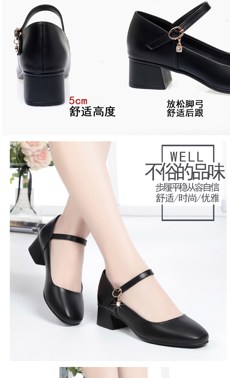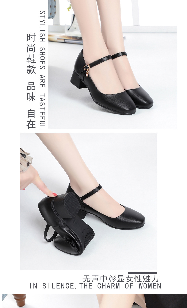 Women’s mid-heeled shoes with deep mouth, thick heels