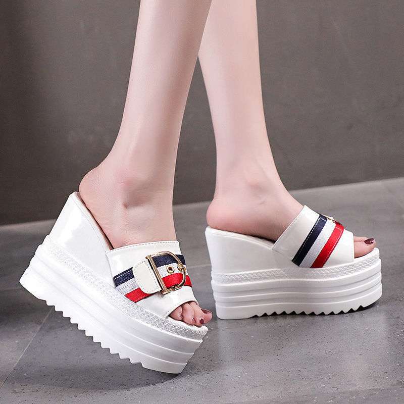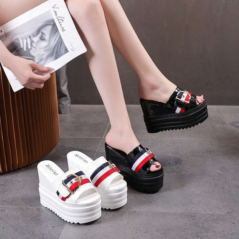 Wedge heel thick bottom fish mouth slipper
