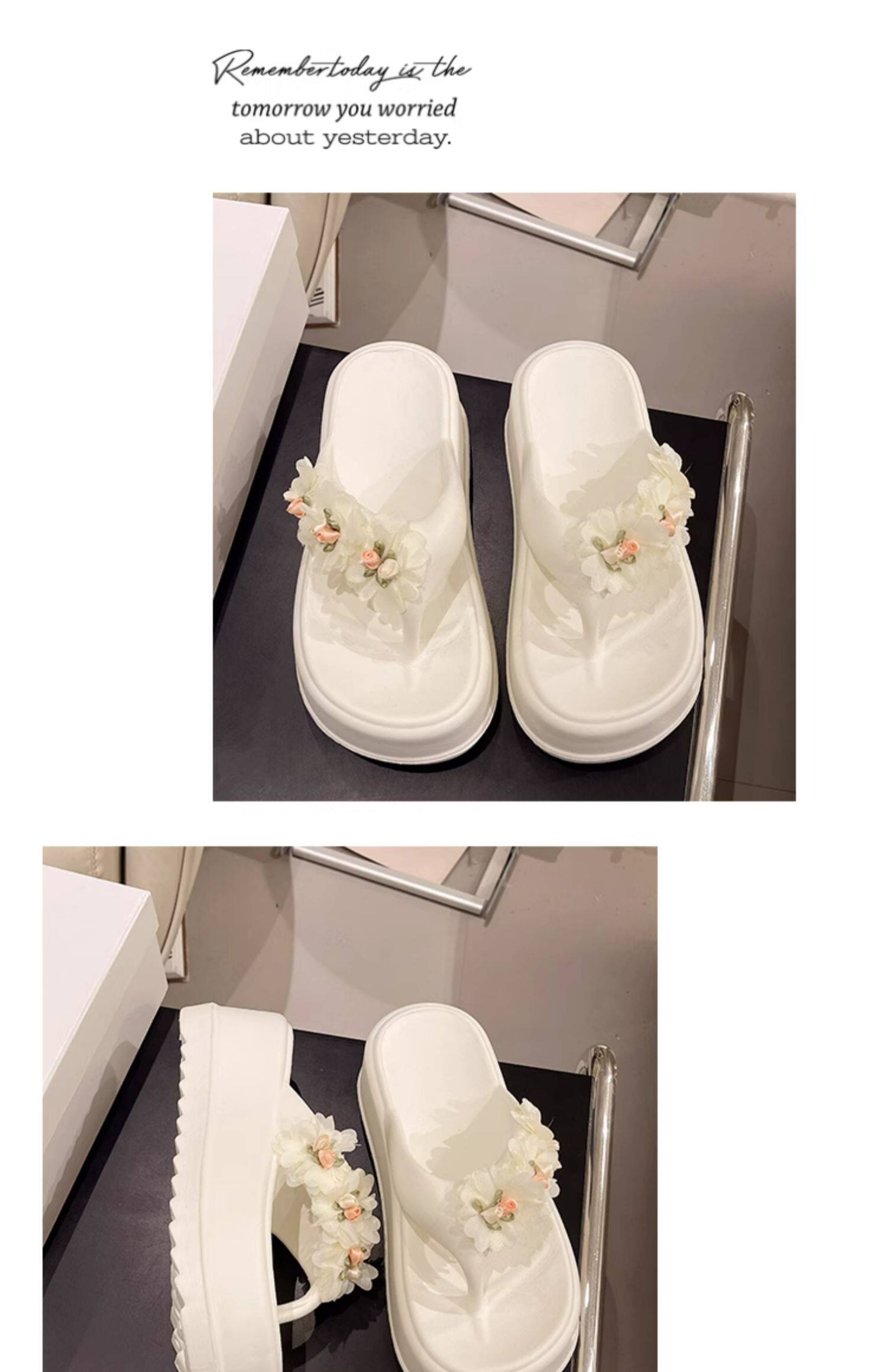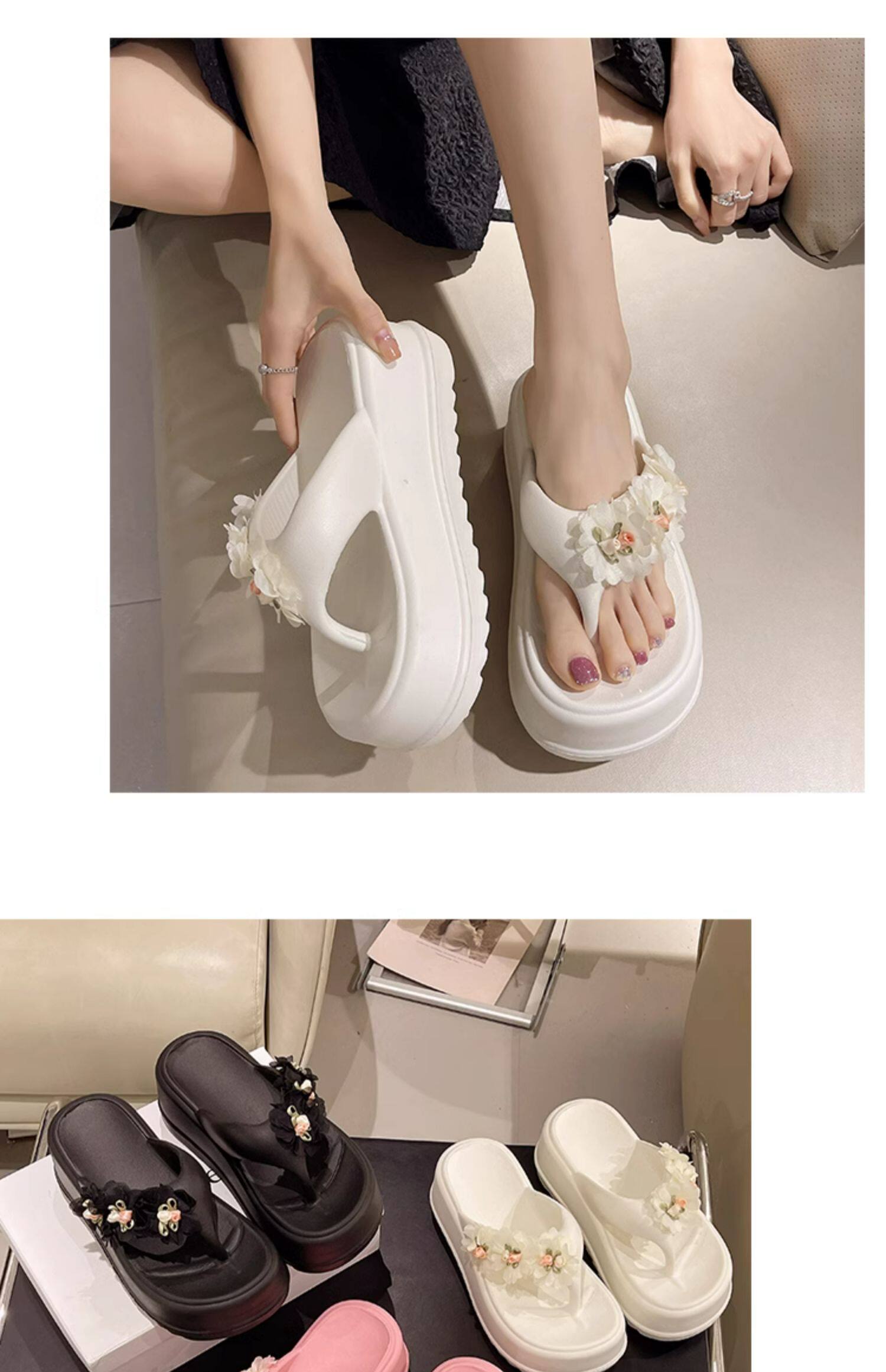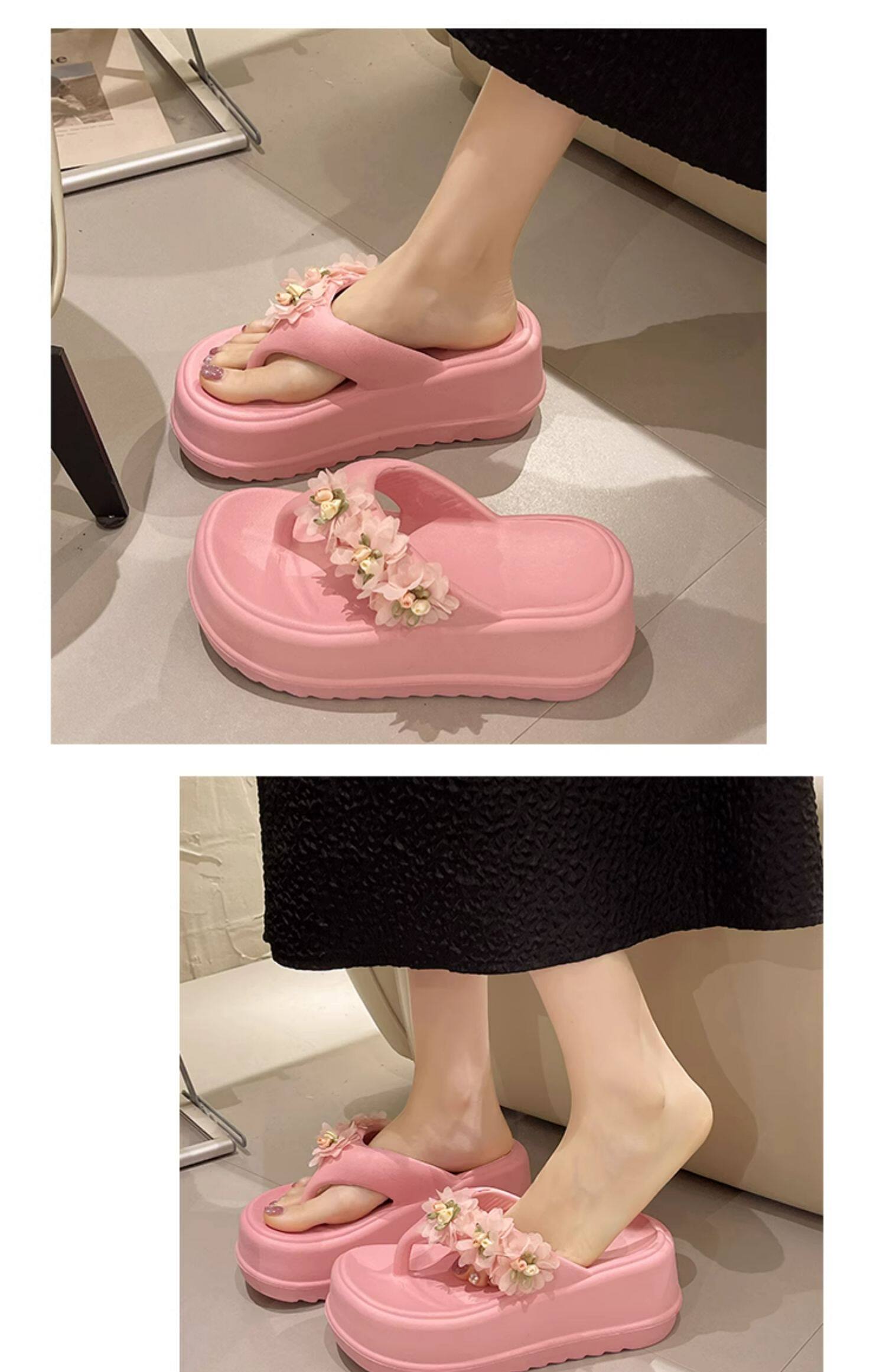 Women’s flip flops cute flower thick bottom high heel sandals