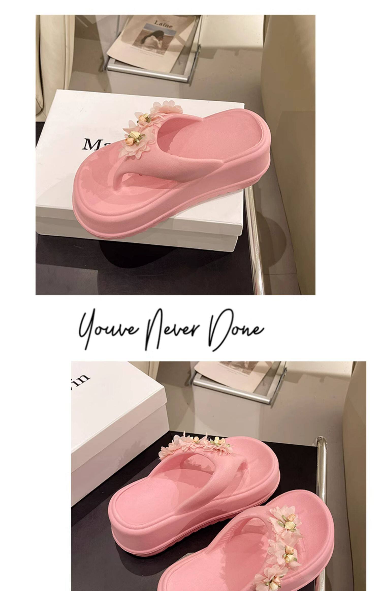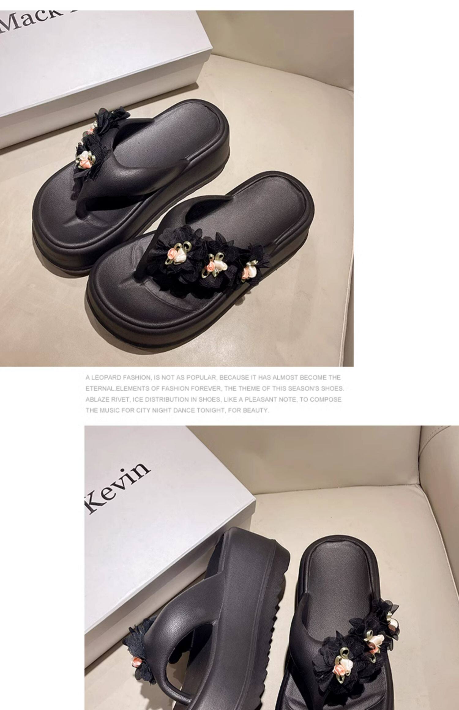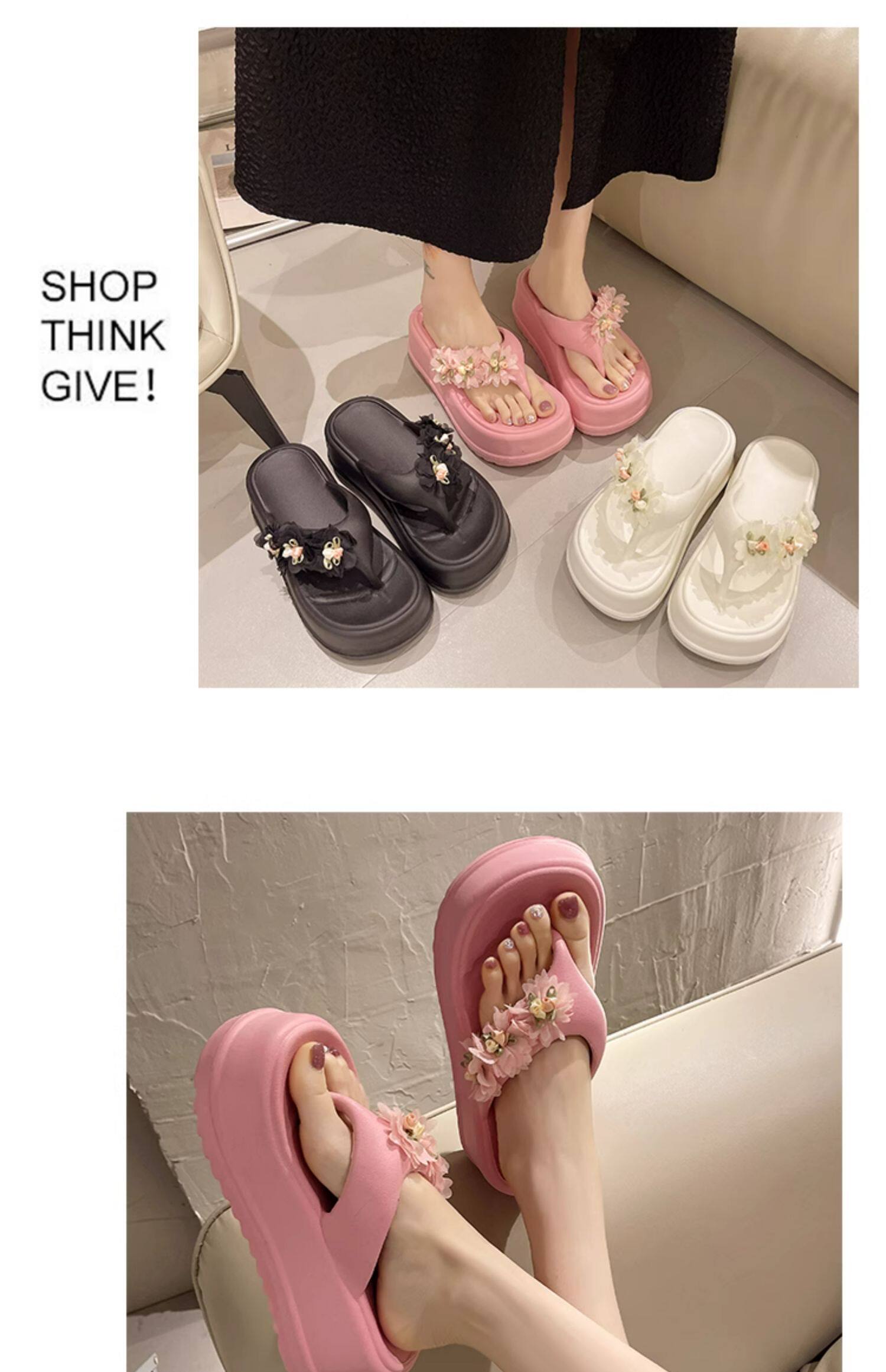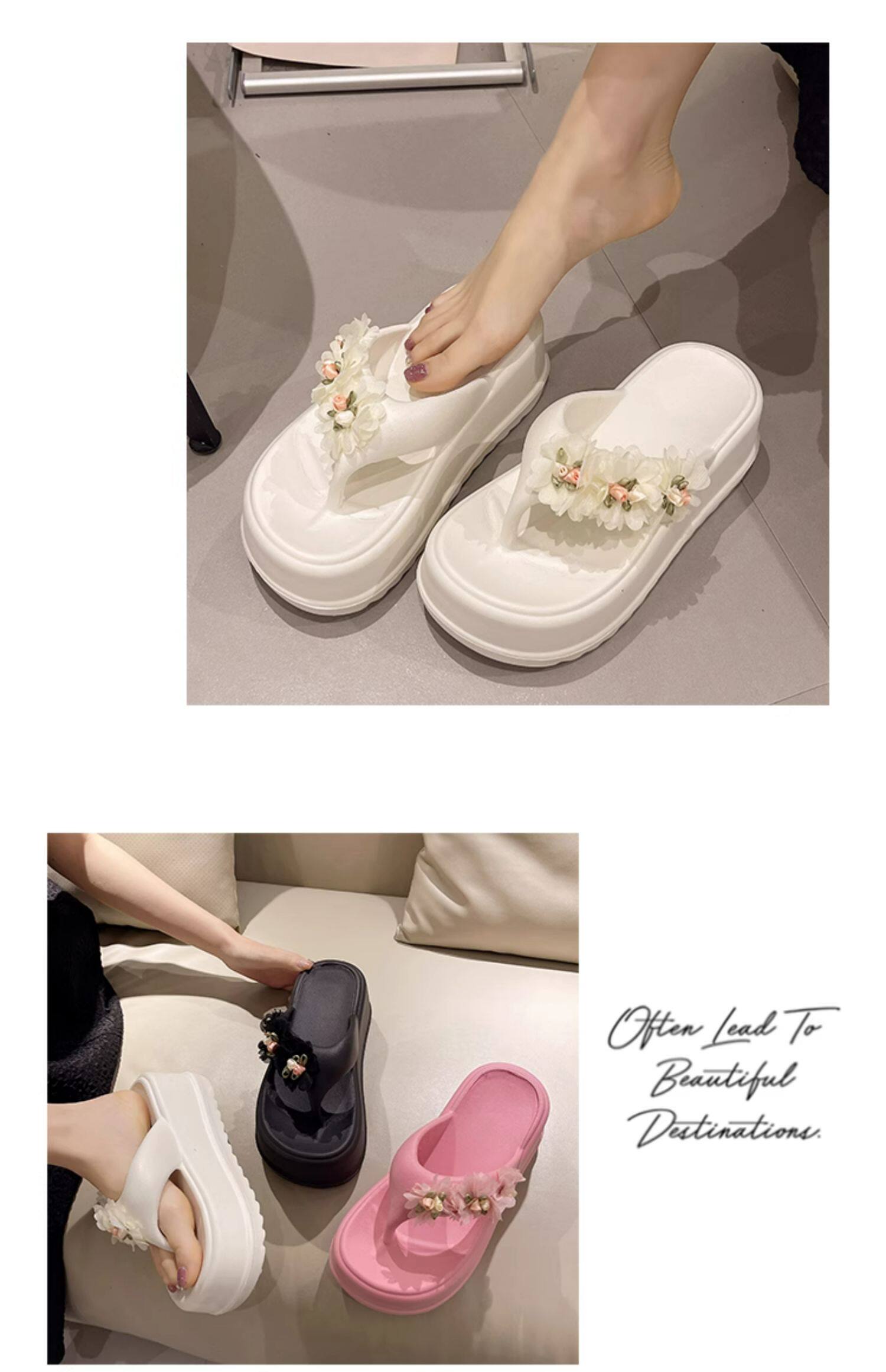 Women’s flip flops cute flower thick bottom high heel sandals