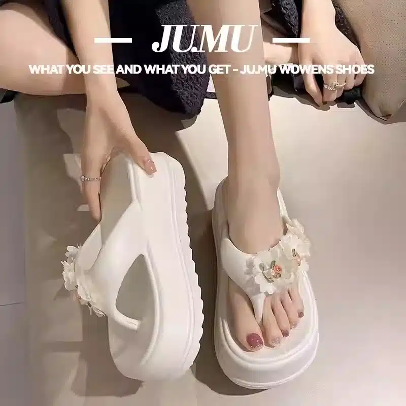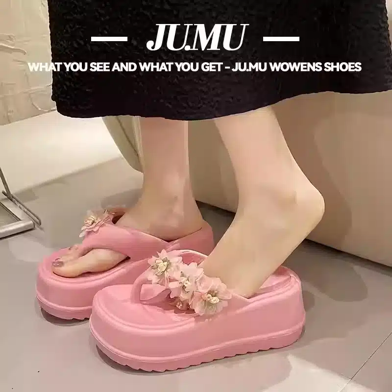 Women’s flip flops cute flower thick bottom high heel sandals